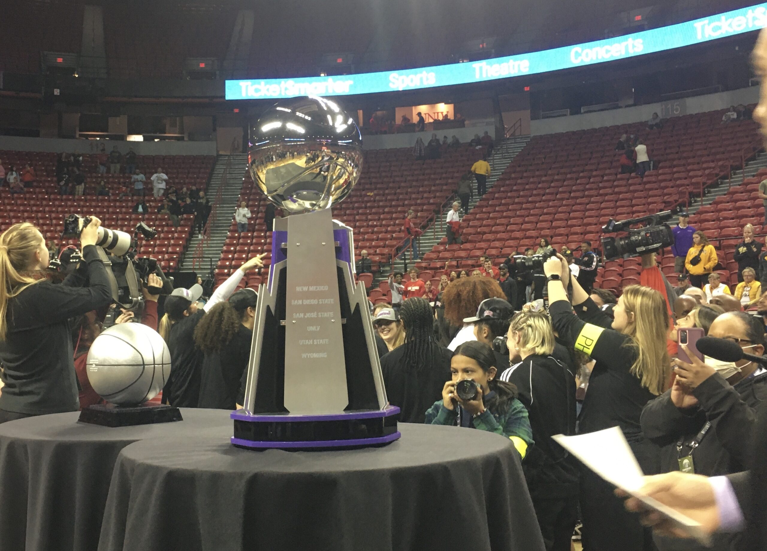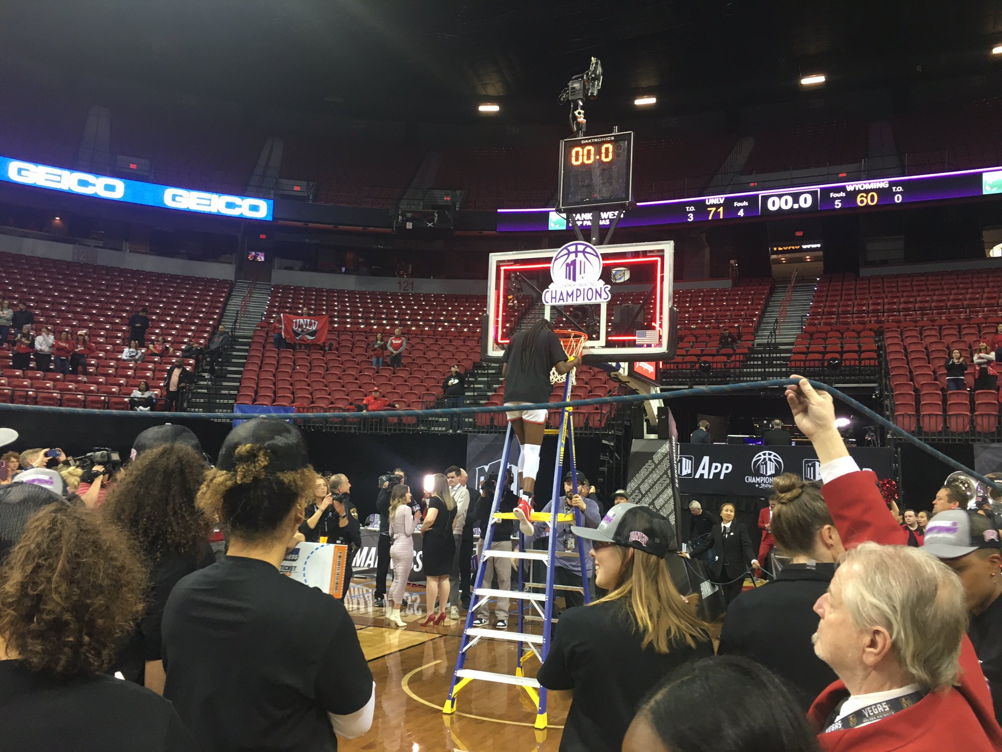The Lady Rebels basketball team swept through the Mountain West undefeated in the regular season and then polished off the Wyoming Cowgirls, 71-60, in the conference tourney final Wednesday to cut down the net and punch their ticket to the national basketball tournament.