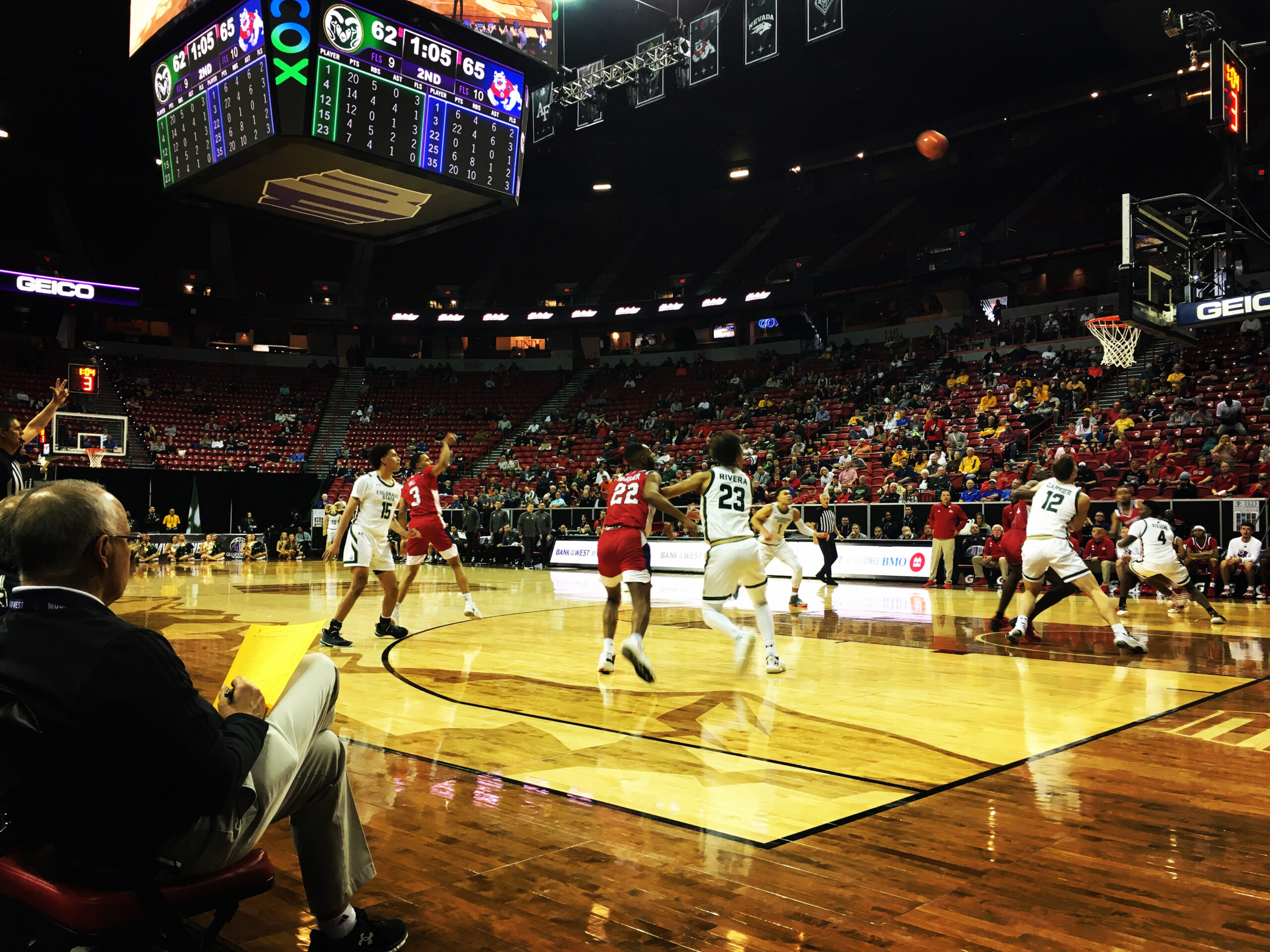 — UNLV’s arena is neutralized for the basketball tournament so that the Lady Rebels and Runnin’ Rebels do not have a home court advantage over the other MWC teams. The Mountain West has its own court that has a mountain theme from the Final Four played in Denver in 2012.