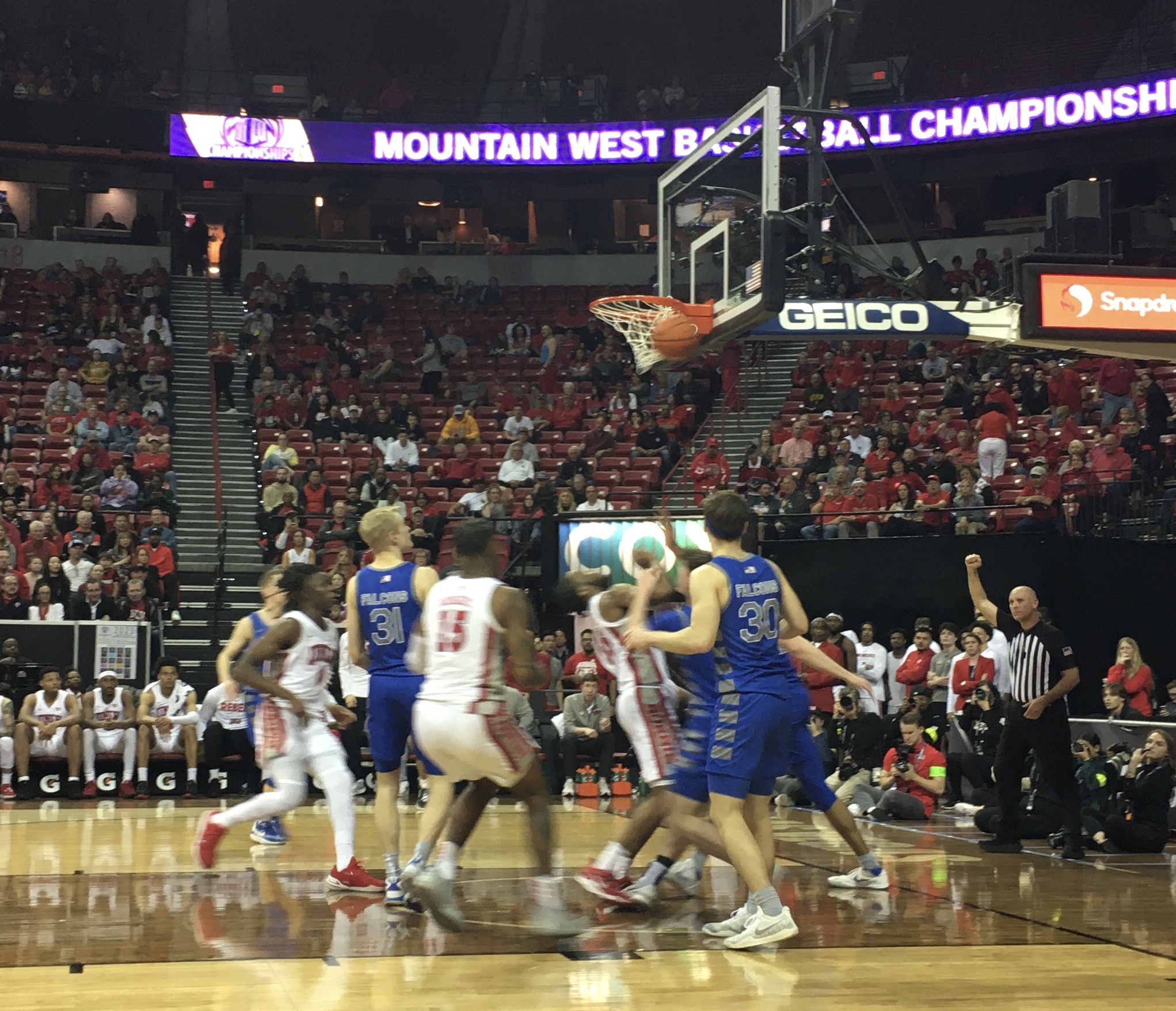 The UNLV Runnin’ Rebels poured in 21 points in the five-minute overtime after scoring only 24 in the entire 20-minute first half as UNLV polished off the Air Force Academy, 78-70, in OT in the first round of the Mountain West Conference tournament at Thomas & Mack Center Wednesday.