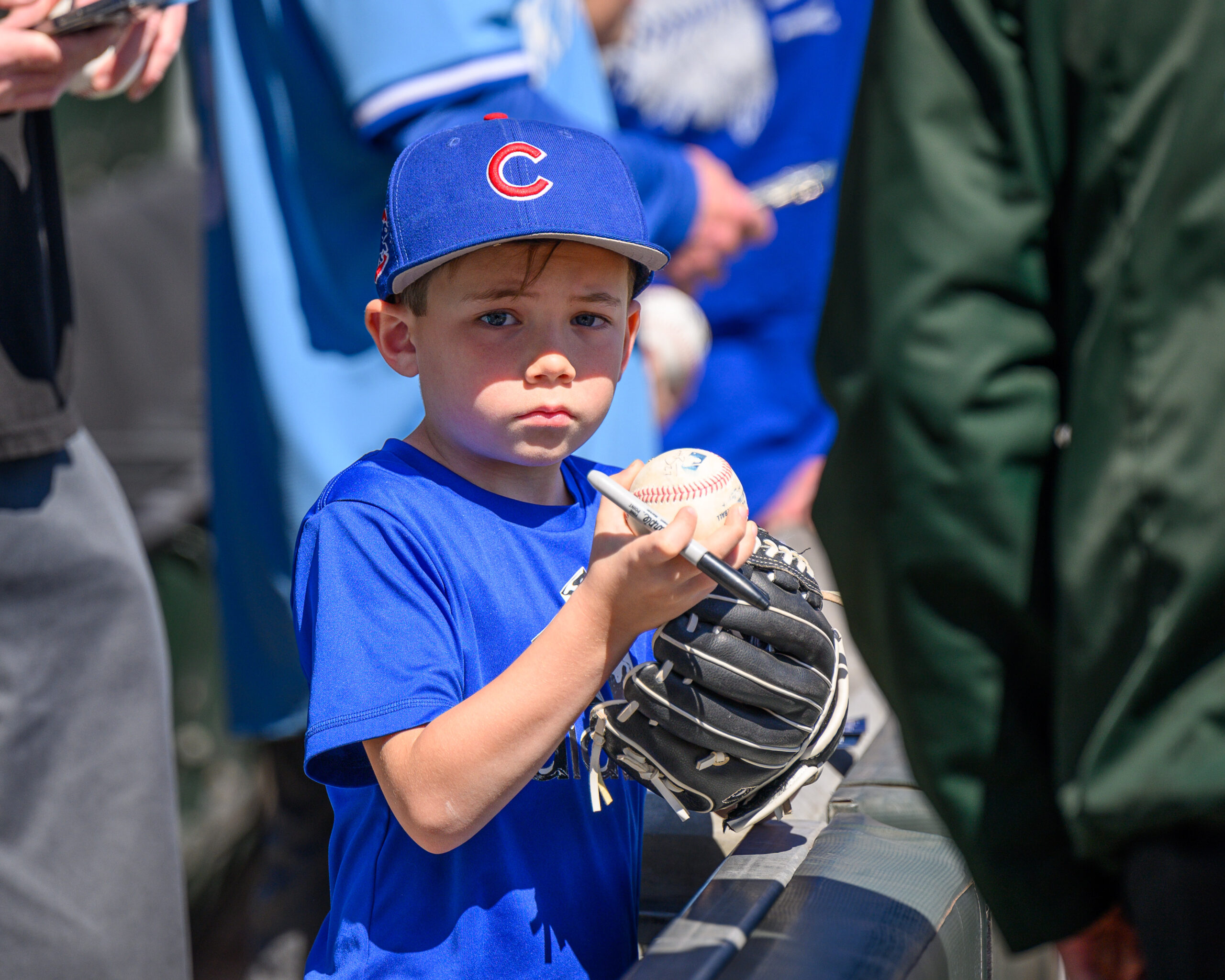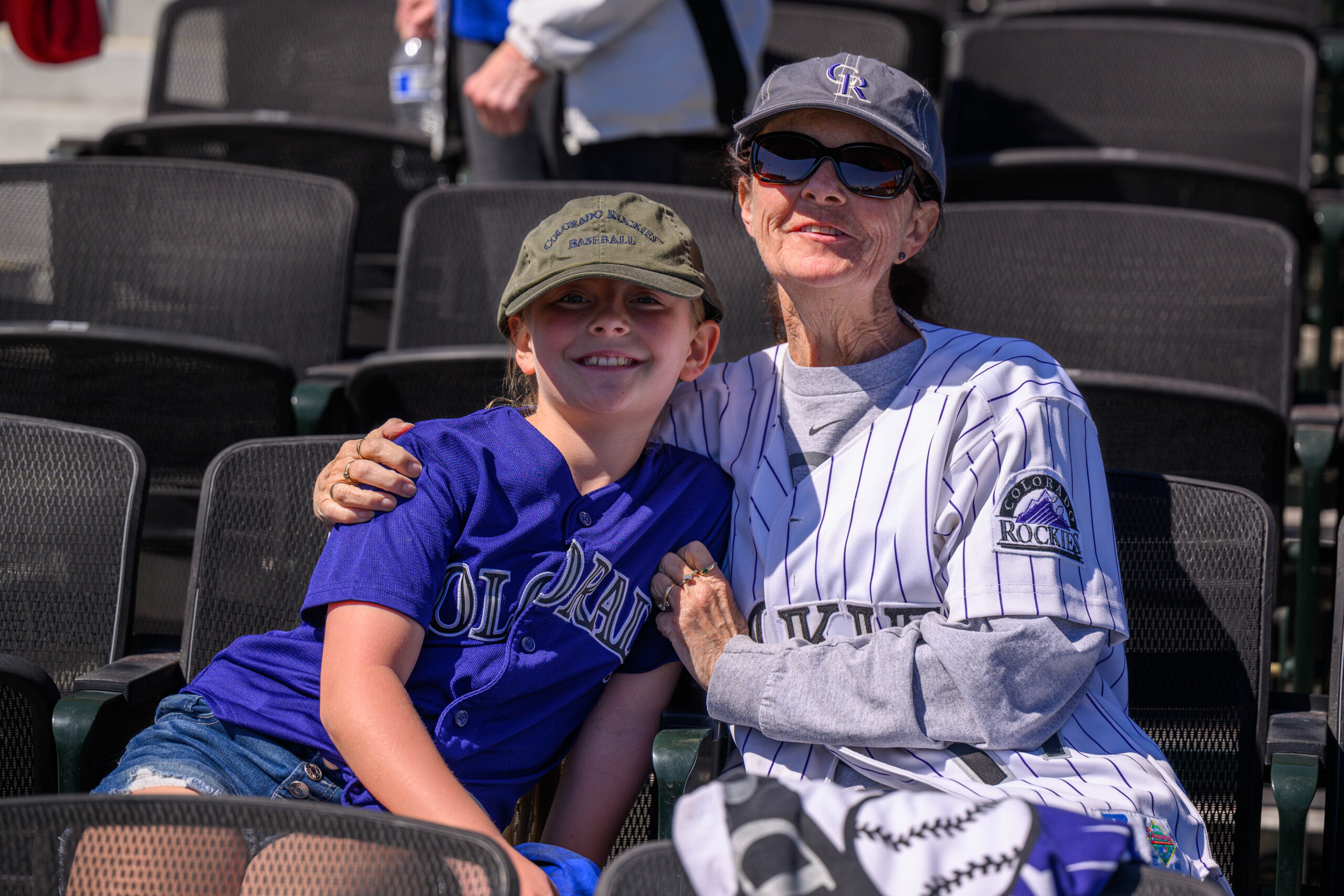 There are lots of family photos of kids settled in at the ballpark.