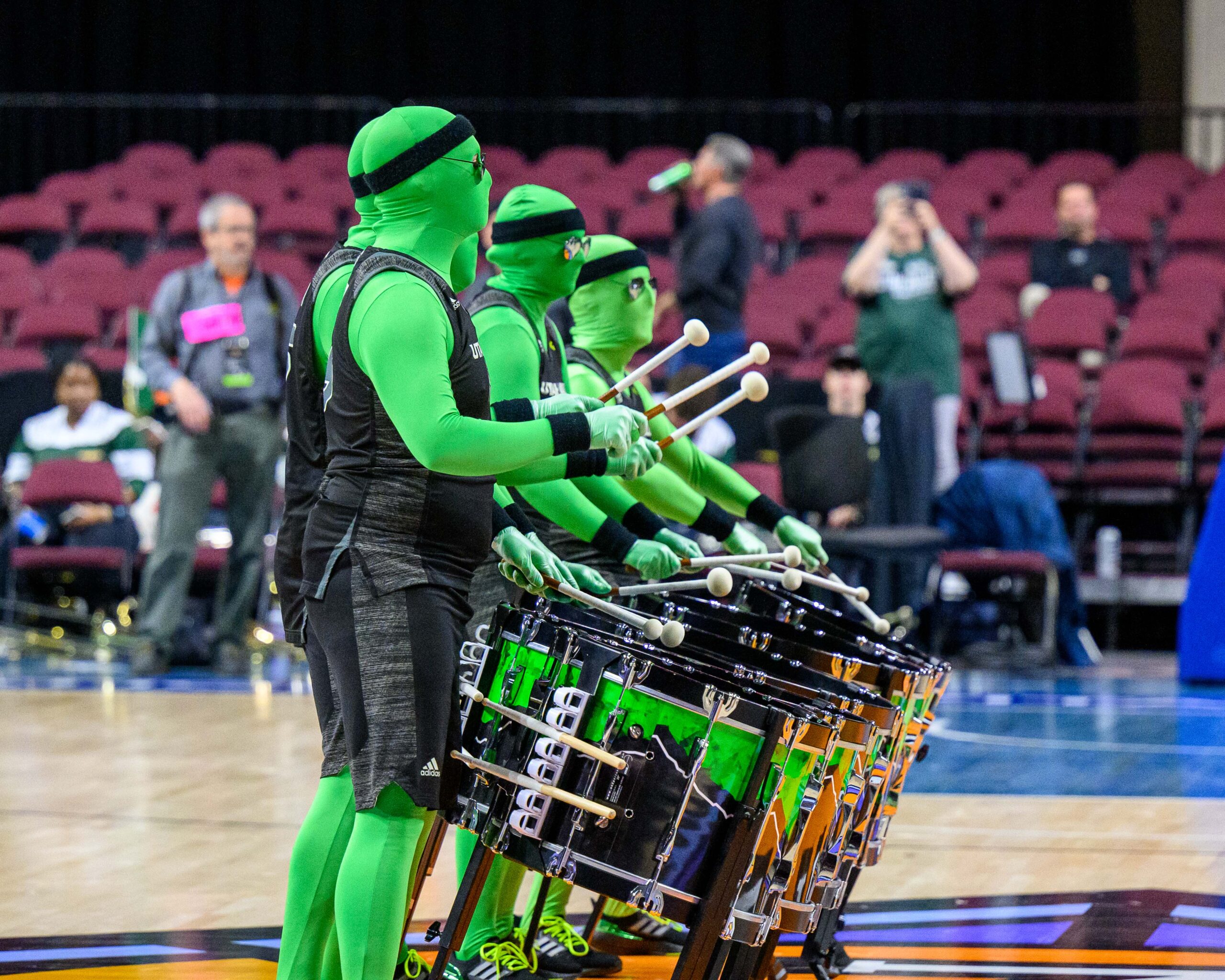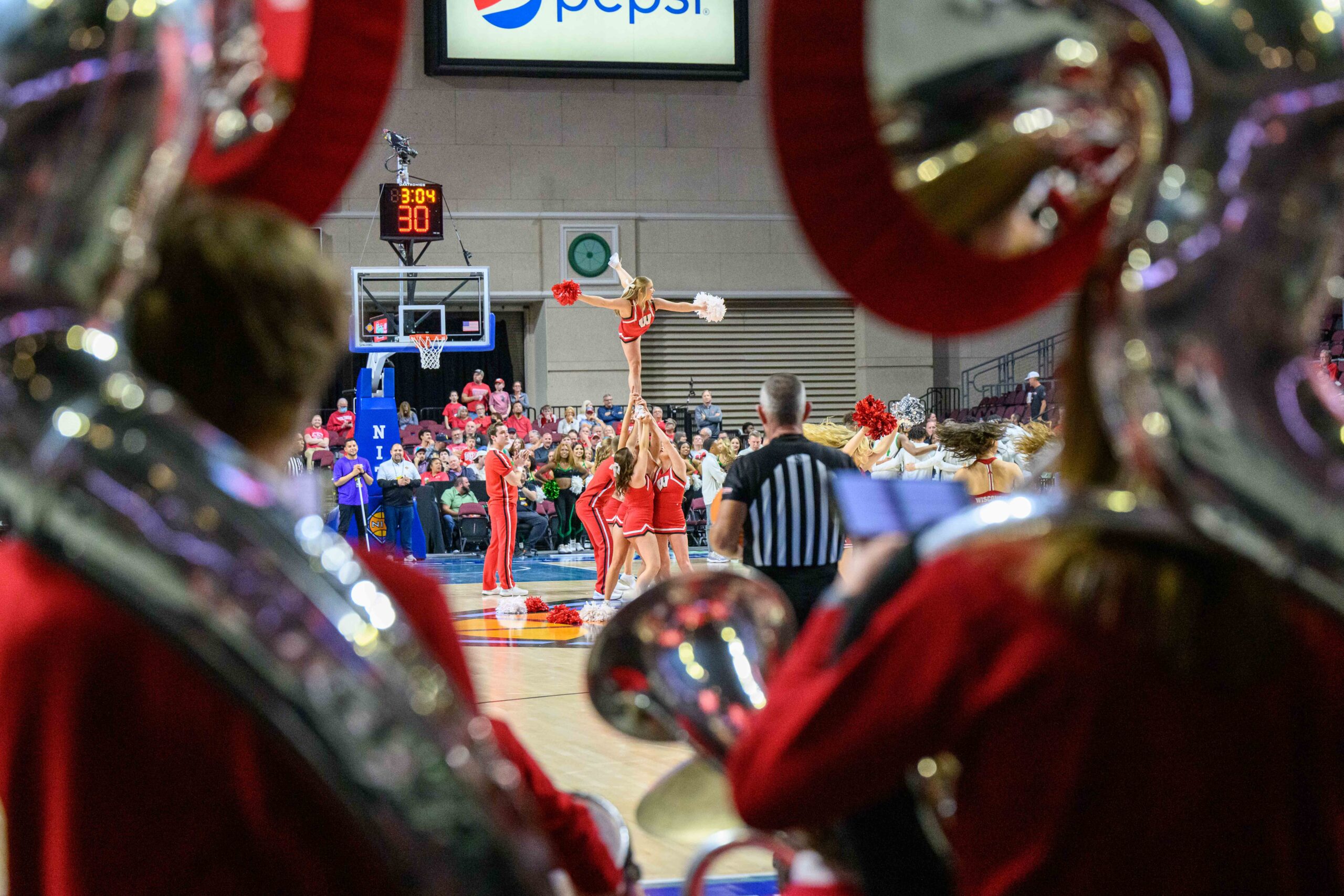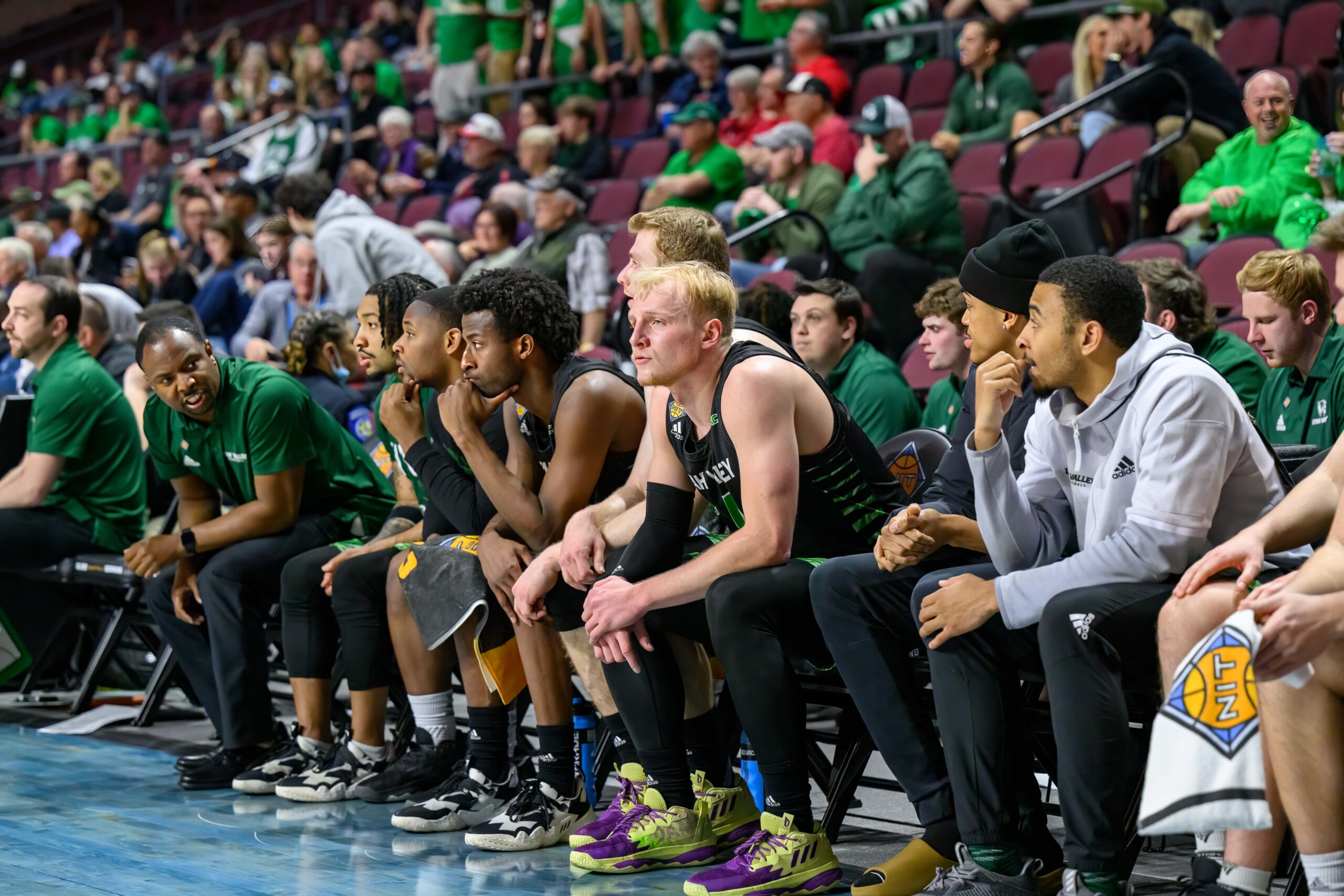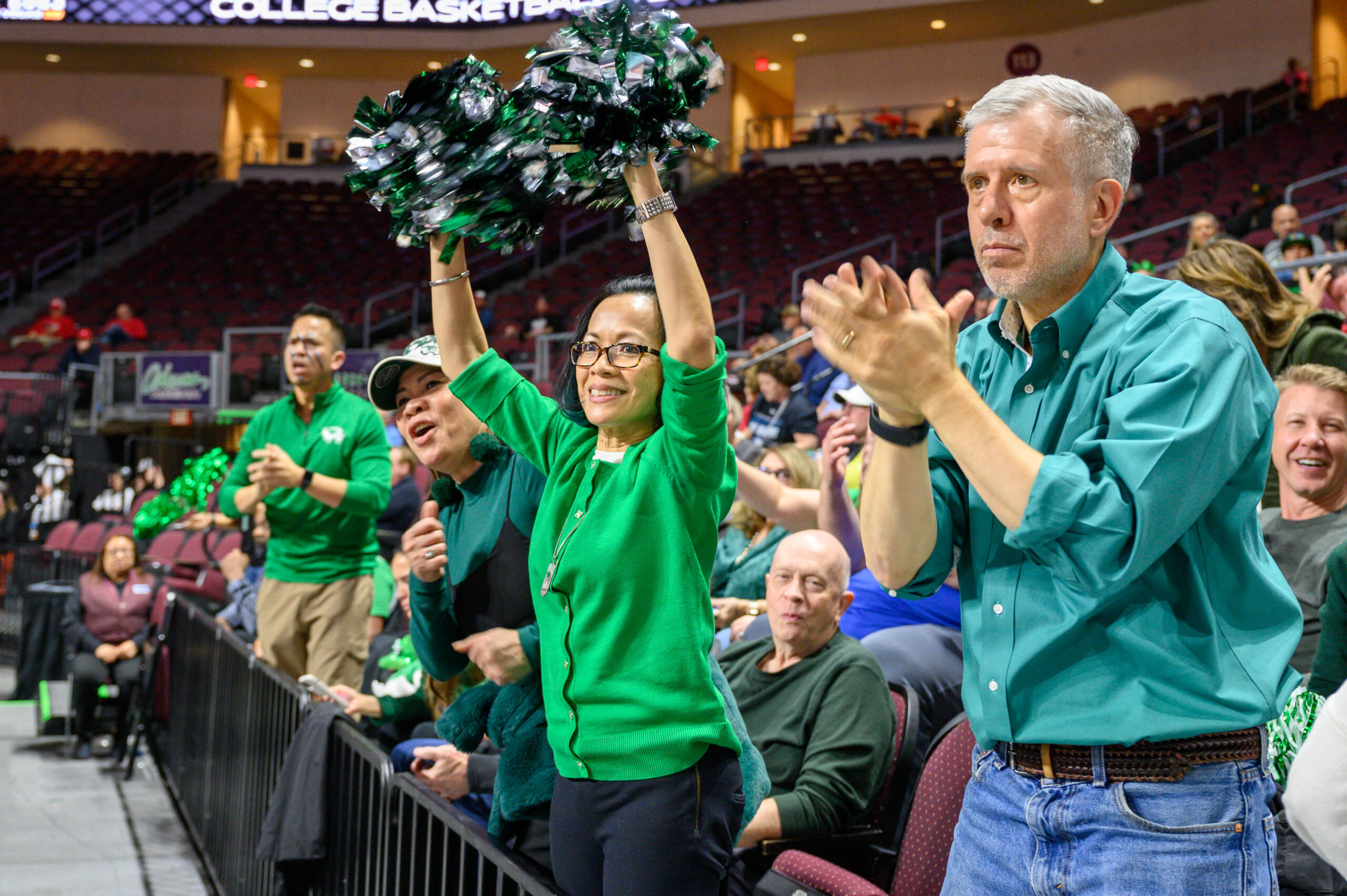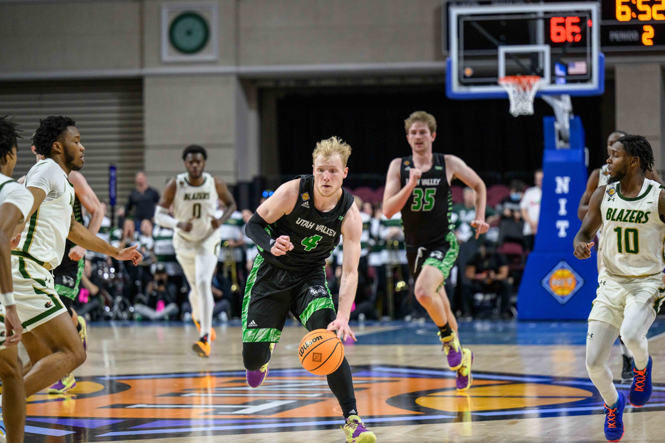 But there was still hoopla over the NIT hoops, including the Utah Valley president who was cheering with pom poms and the Utah Valley band members in green bodysuits.