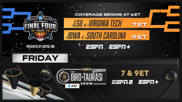 The women’s Final Four is also set — a high-profile match-up between Iowa and unbeaten South Carolina and LSU vs Virginia Tech.