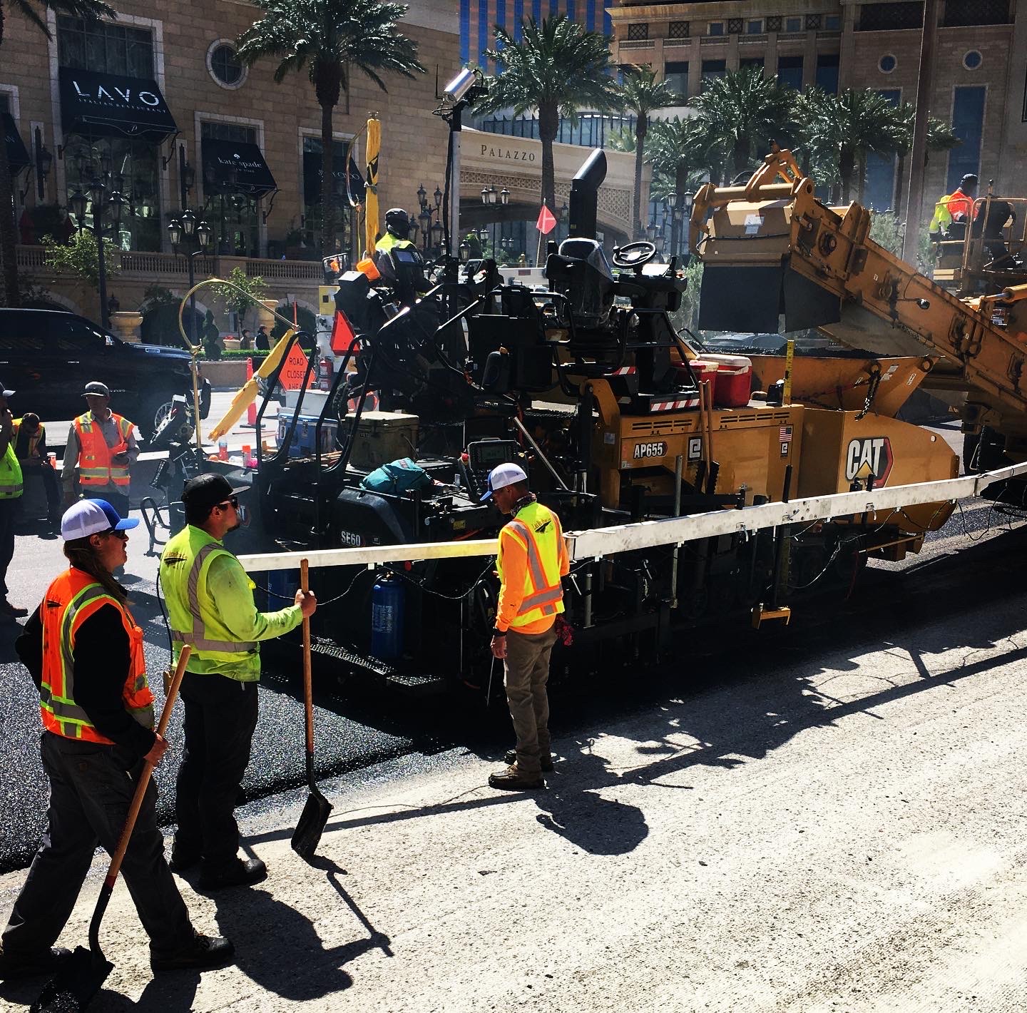 The road paving company is playing the Strip more hours a day than Blue Man Group, applying a layer of pavement for the Formula 1 Las Vegas Grand Prix that is is set for Nov. 18.