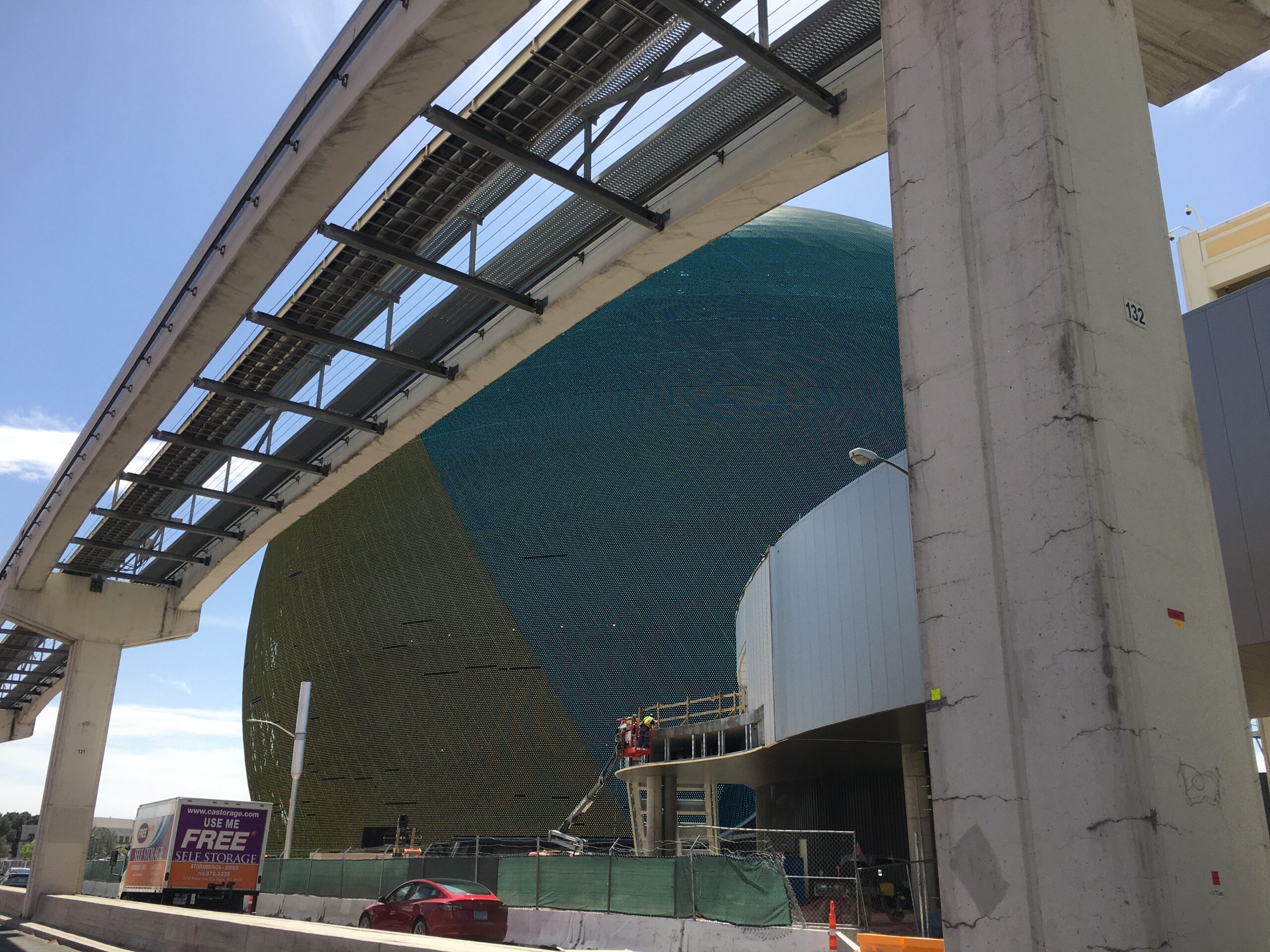 LVSportsBiz.com also checked out the nearby MSG Sphere music venue that is expected to be completed later this year. The Sphere, owned by Madison Square Garden’s James Dolan, will have temporary outdoor beachers on its site behind the Venetian casino-hotel for the November race event. There was a rumor that Dolan would sell the New York NBA Knicks and NHL Rangers but keep the Sphere after the 17,500-seat venue is completed but apparently that’s not happening.