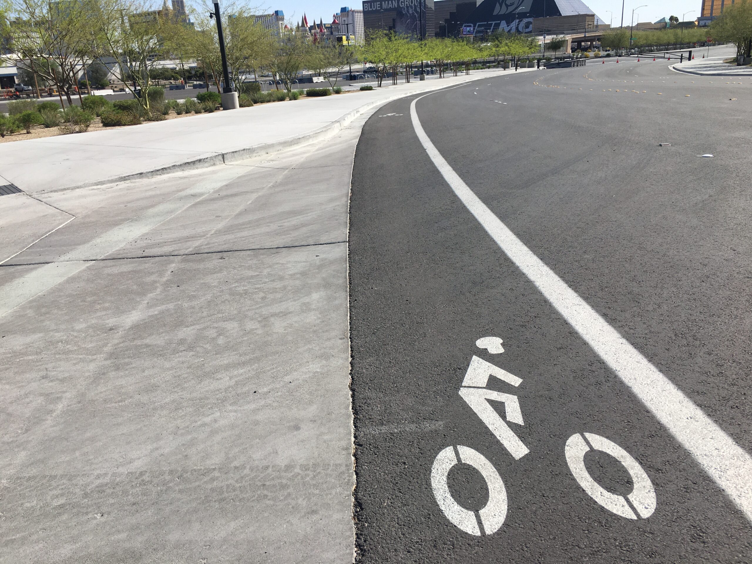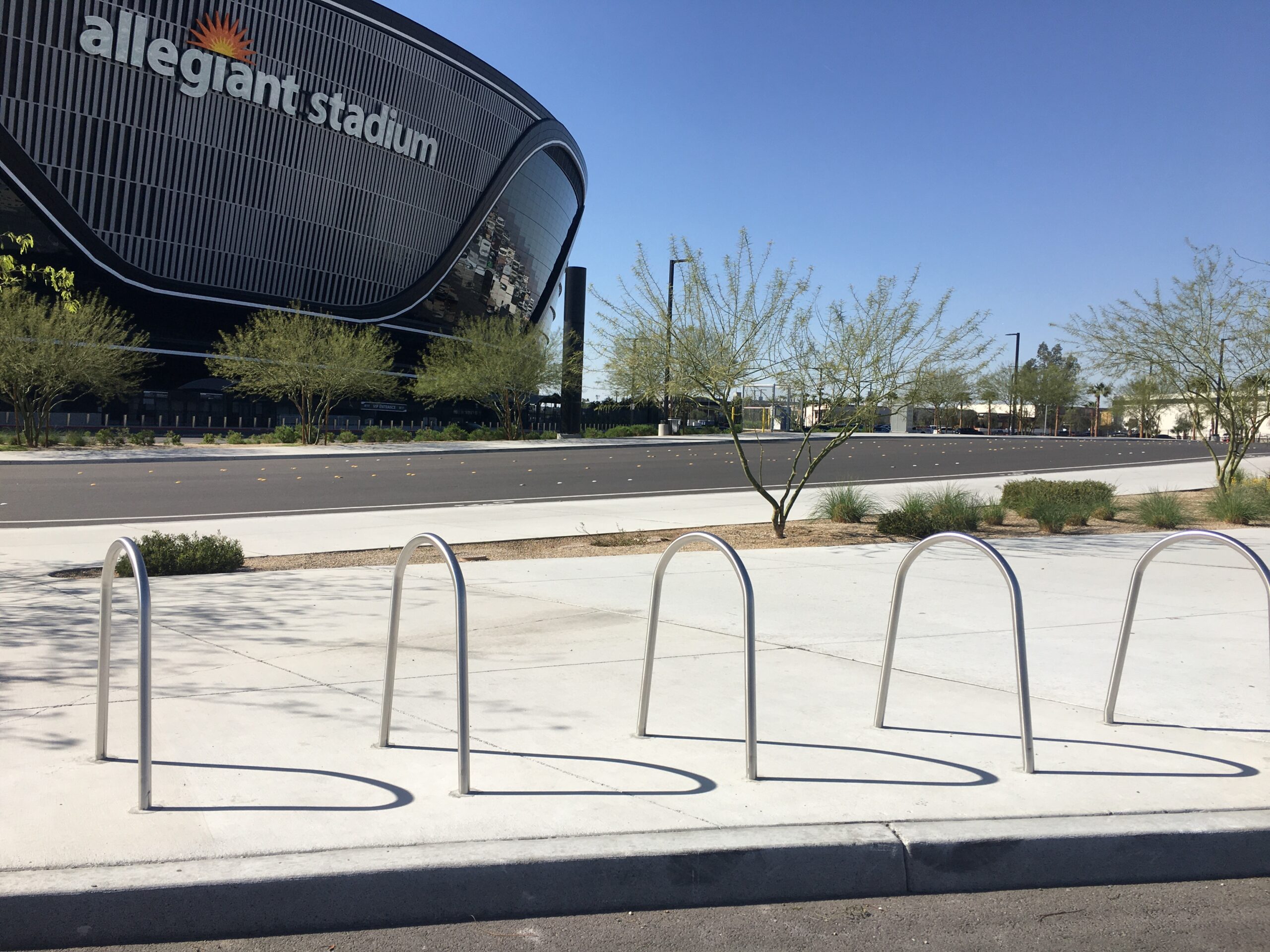 It took some time and gentle badgering from LVSportsBiz.com, but the Raiders actually installed three sets of bike racks on a sidewalk in a parking lot on the stadium’s north side. The truth is as much as Las Vegas yearns to be considered major league, its transportation system is bush league. You’re pretty much on your own, either relying on your car, a ride share or a bus system that is not used enough because it’s not comprehensive enough. I get around on my bicycle in a more efficient way.