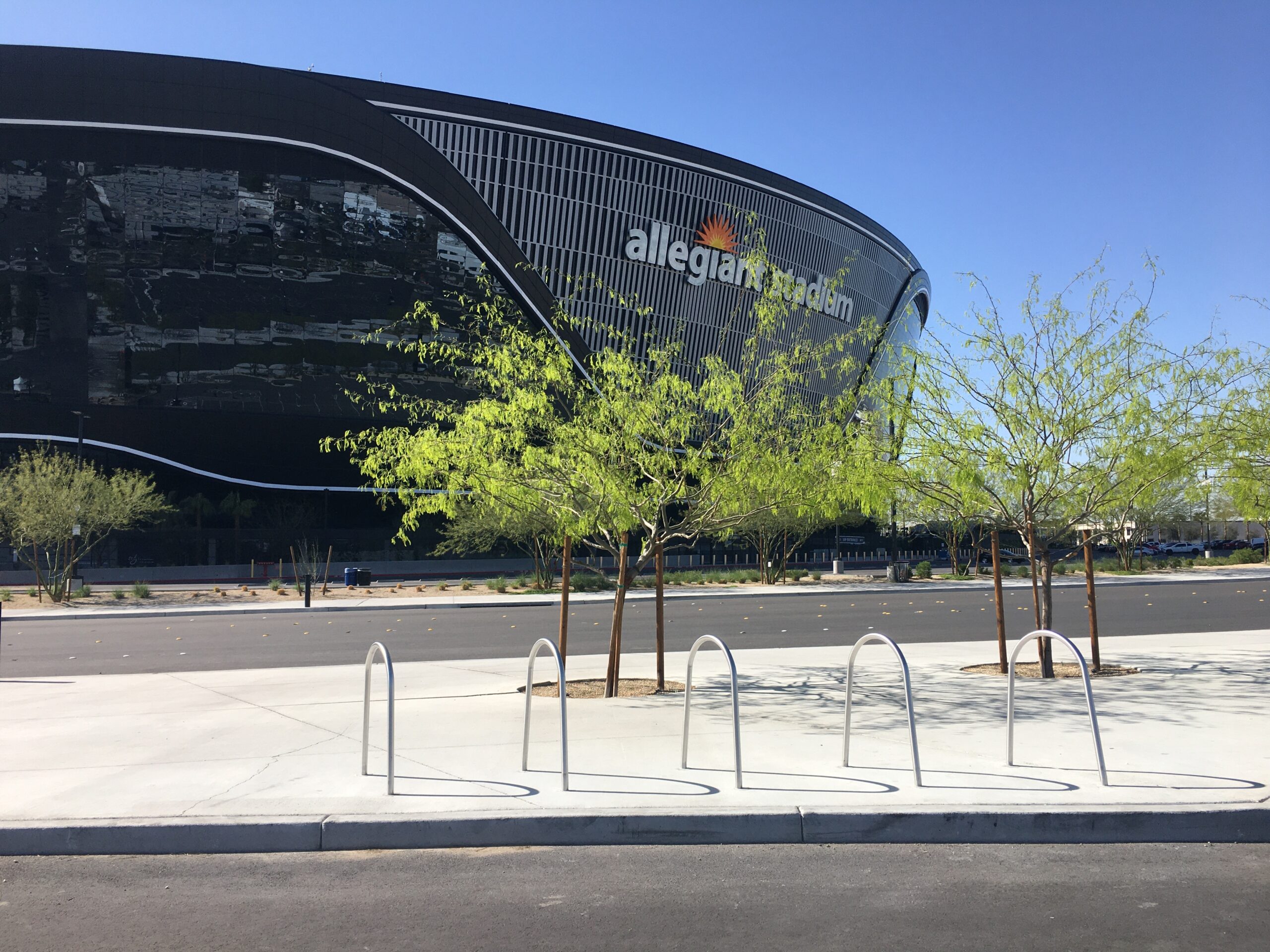 With my bicycle, I circumvent the Nevada DOT road mess by following back streets to the Strip and little, quirky side roads to reach the Raiders-run Allegiant Stadium.