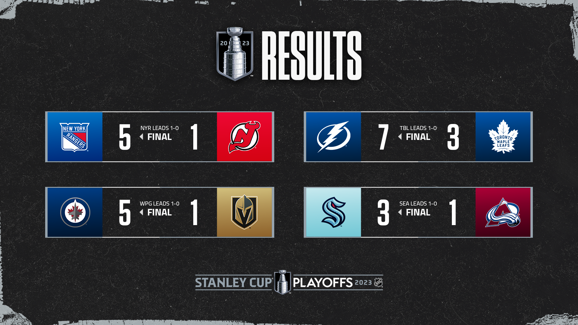 Game 2 is Thursday back here in Vegas at 7 PM. All four visiting and lower-seeded teams in the Western Conference won their Game 1 road games. Game 1 winners were Dallas, Los Angeles, Seattle and Winnipeg here in Las Vegas.