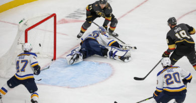 Then about five minutes later, center Jack Eichel adroitly redirected the puck off a shot from the point from defenseman Alex Pietrangelo and the VGK had clawed their way into the lead at 2-1.
