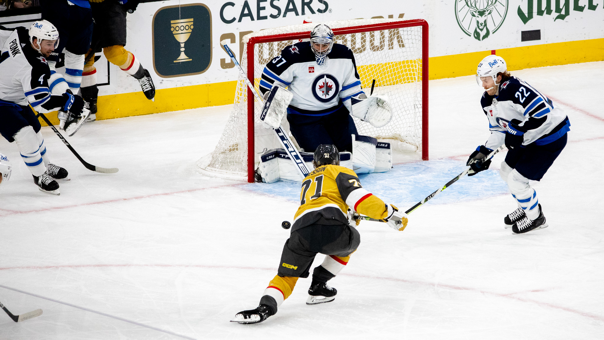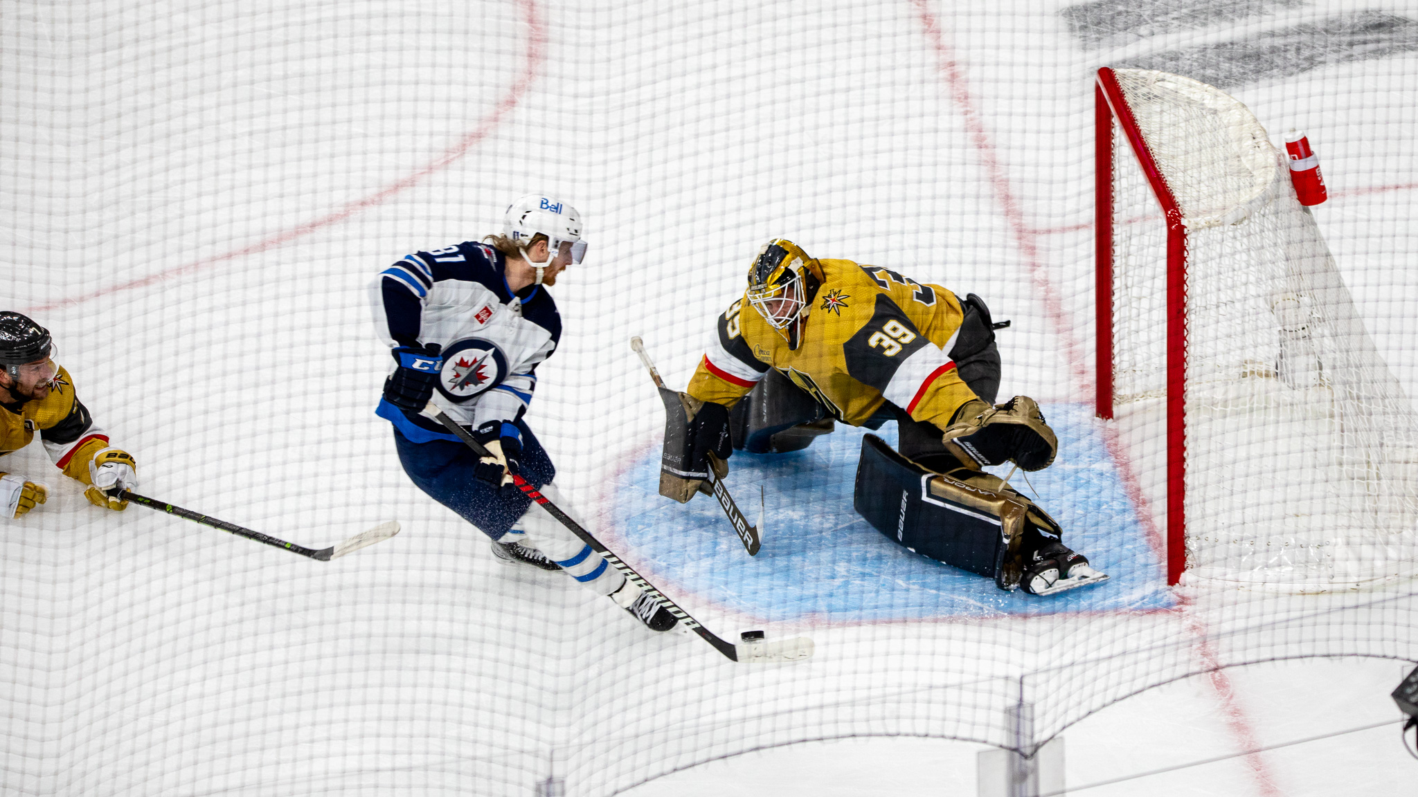 But at 16:01 Kevin Stenlund beautifully redirected a pass from Saku Maenalanen past VGK goalie Laurent Brossoit and Winnipeg came back to tie the game at two after two periods in Game 2.