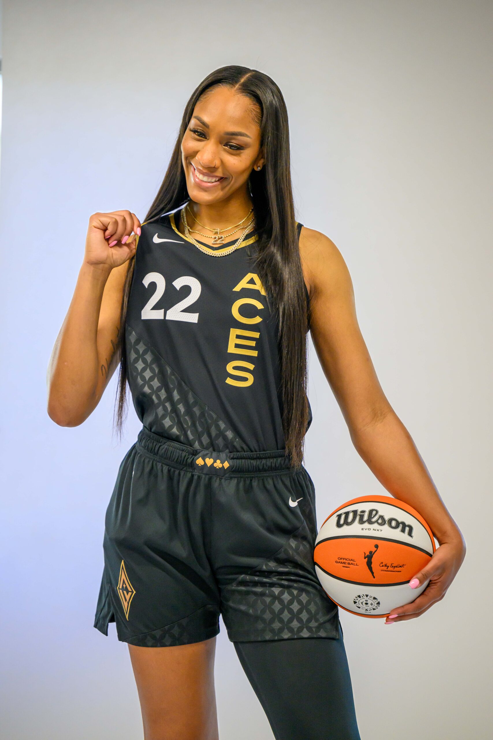 Two-time WNBA MVP A’Ja Wilson flashed a disarming smile as she was shuttled from video camera to video camera inside Vu Studios, where the league’s defending champs are filming their intro video for their games on the Strip.