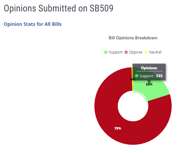 As of Wednesday at 3:50PM, the Nevada Legislature’s “opinions submitted on SB 509” showed 79 percent against and 21 percent for the bill.