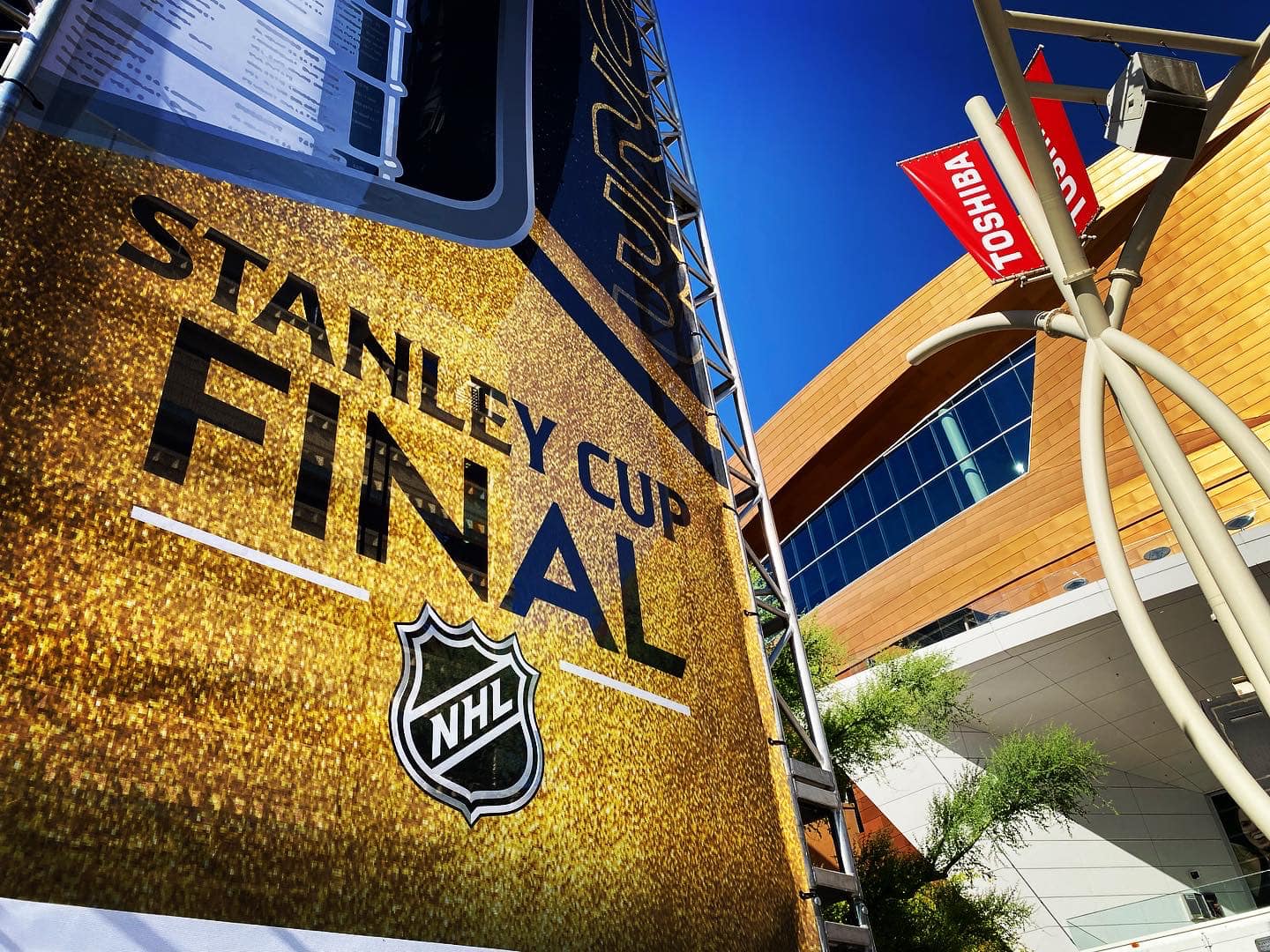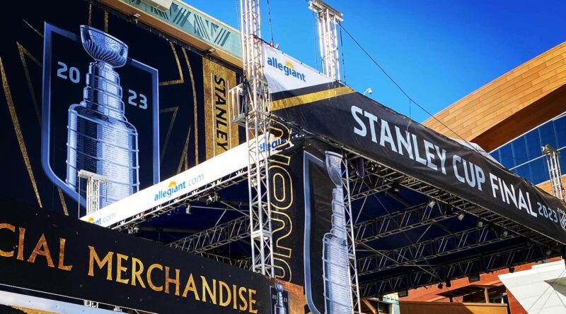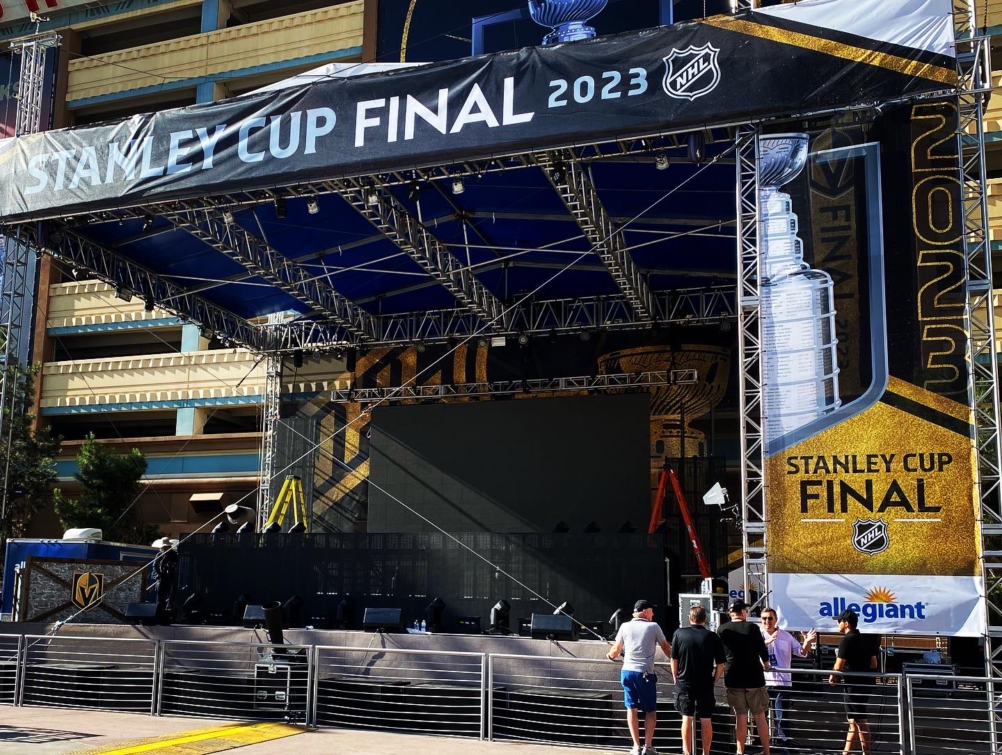 Arena crews and security were getting music equipment and plaza gear ready for the spectacle of Game 1 of the Stanley Cup Final at T-Mobile Arena Saturday morning.