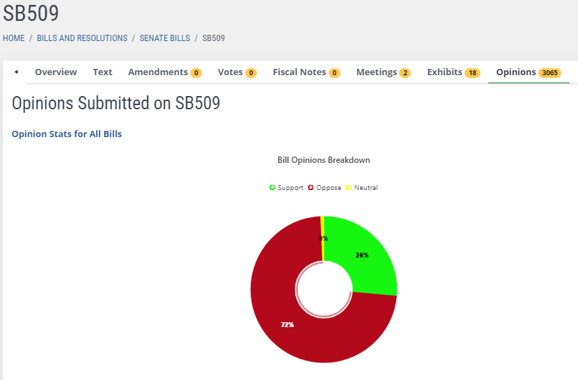 The bill’s own link says 72 percent of respondents oppose the legislation, 26 percent are in favor and two percent are neutral.