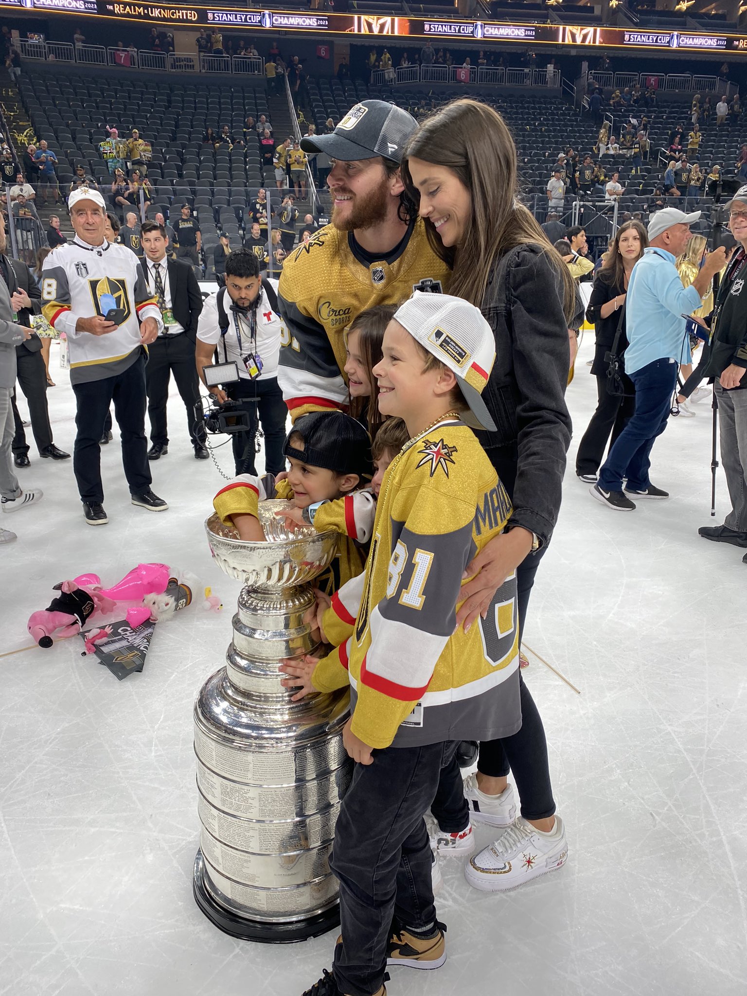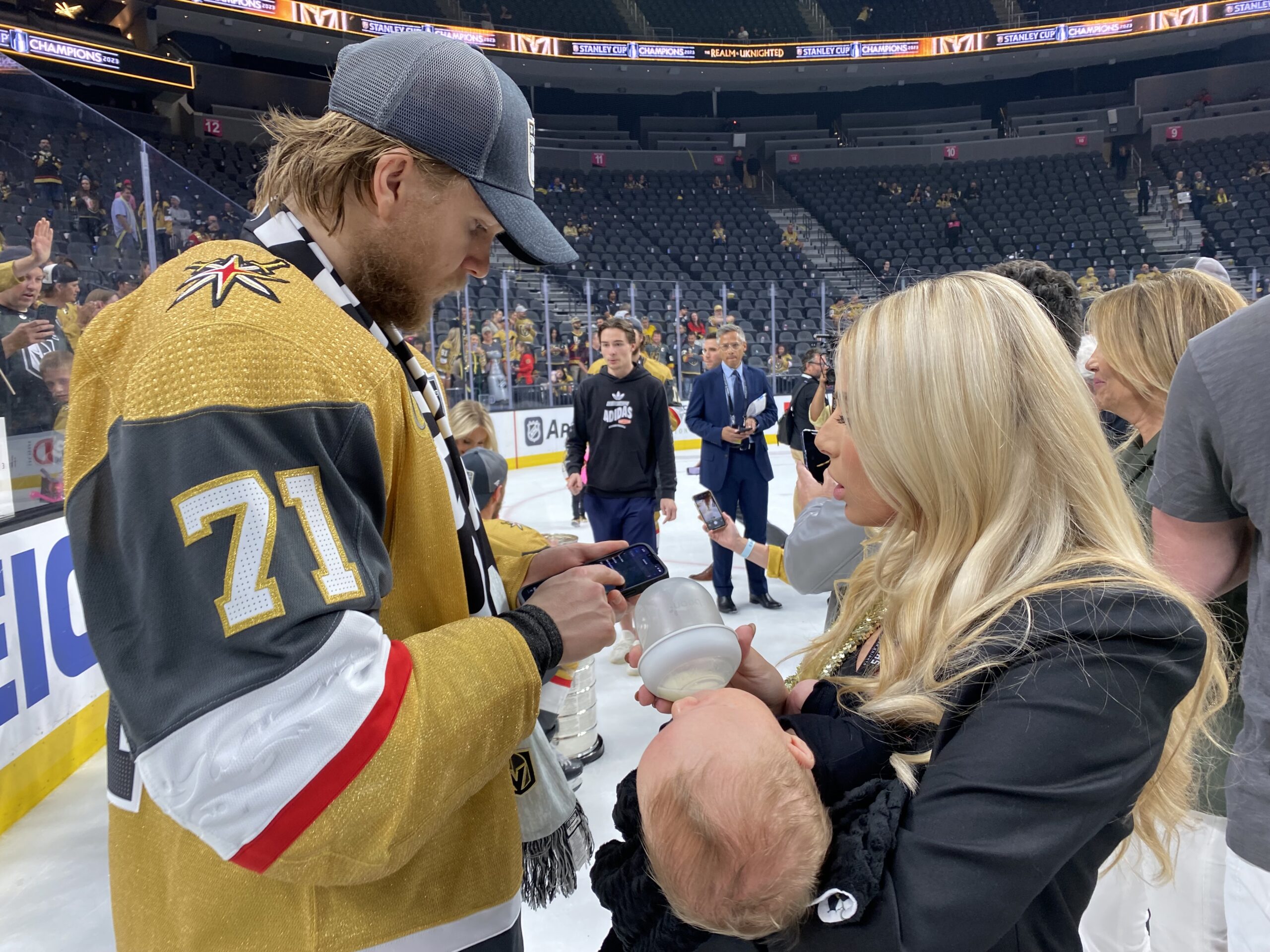 The Misfits Line of Jonathan Marchessault, Reilly Smith and William Karlsson celebrated with their families like all the players did after the game on the ice.