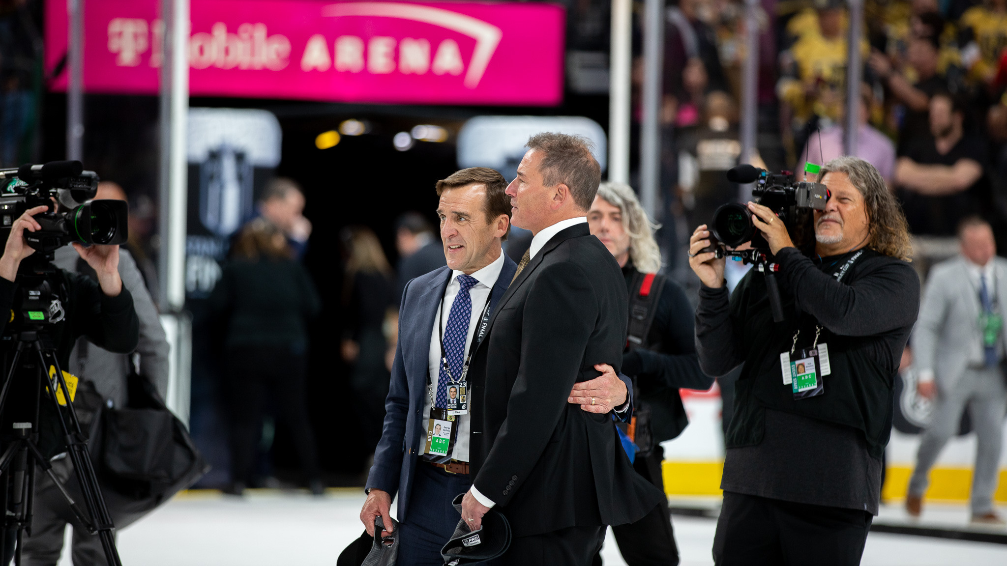“We want the Cup” chants are bouncing off the big arena.