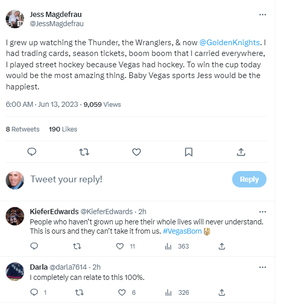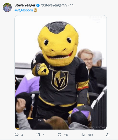 So the lawyer from Las Vegas and hardcore VGK fan Tuesday morning tweeted a photo of the mascot of the NHL team, a six-year-old franchise a mere win away from securing the Stanley Cup trophy at T-Mobile Arena tonight. He added the team hashtag, #vegasborn, on his social media missive.