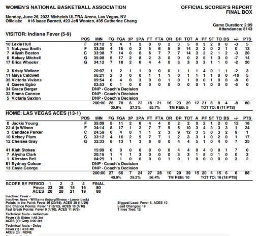 The Aces have now pulled ahead as front runners after the strong 13-1 strong start.
