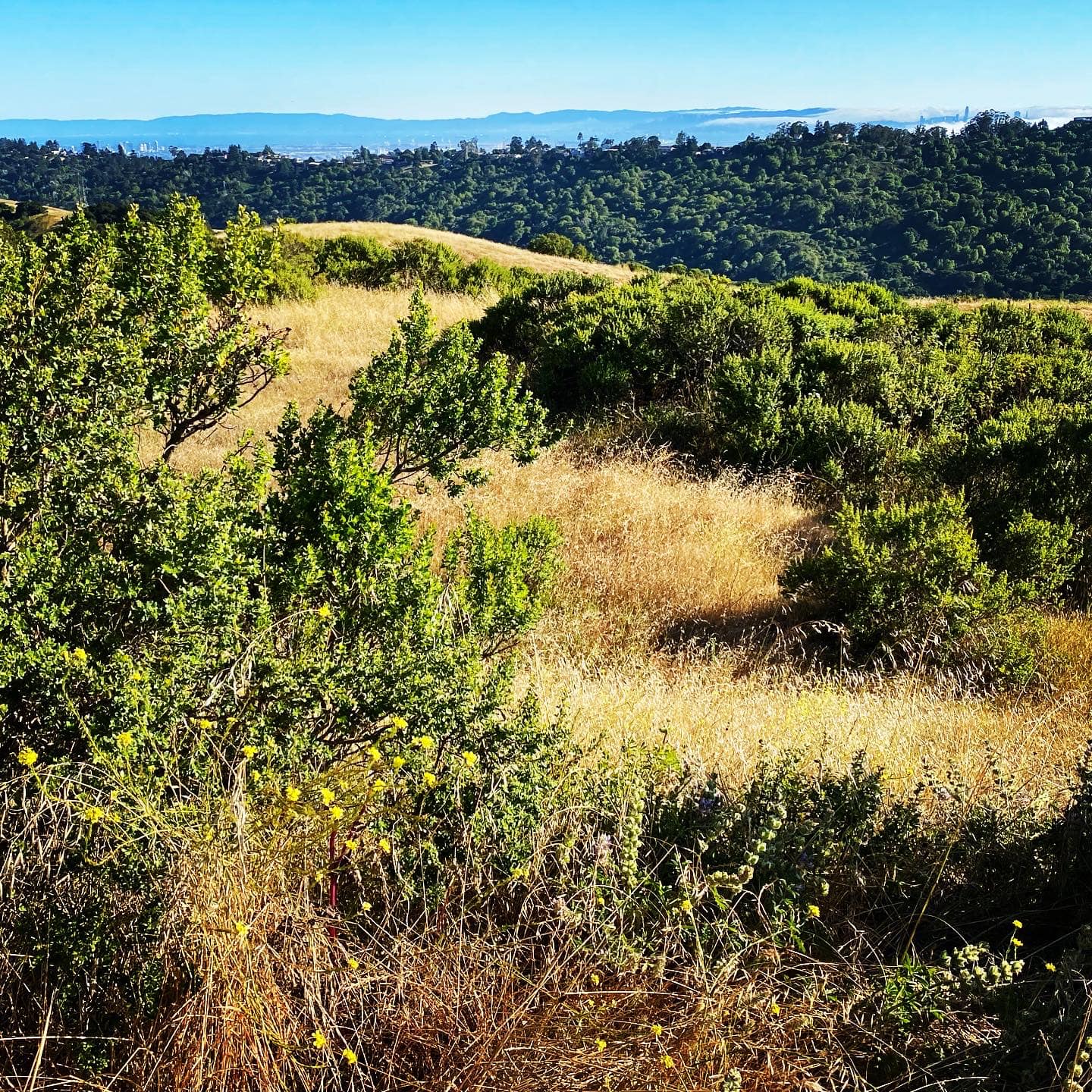 The scenery was ridiculously exhilarating as we biked on a road called, Wildcat Canyon Road. It led to the East Bay Regional Parks system and the undeveloped land with the stunning vistas were around the corner from where Fred Lived. Fred’s hilly Berkeley neighborhood is around the corner from an enchanted forest of old trees and a swath of pavement slicing through the rich vegetation.