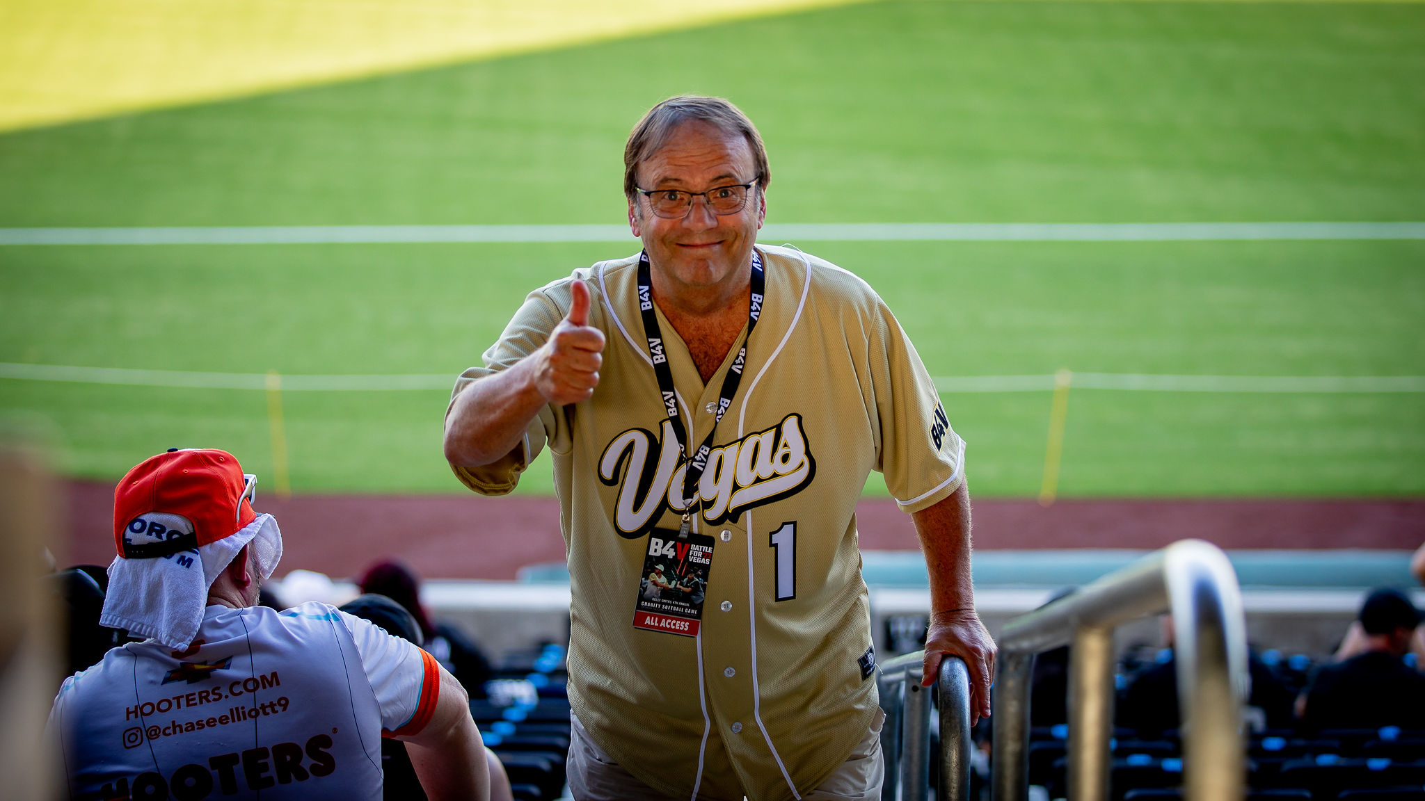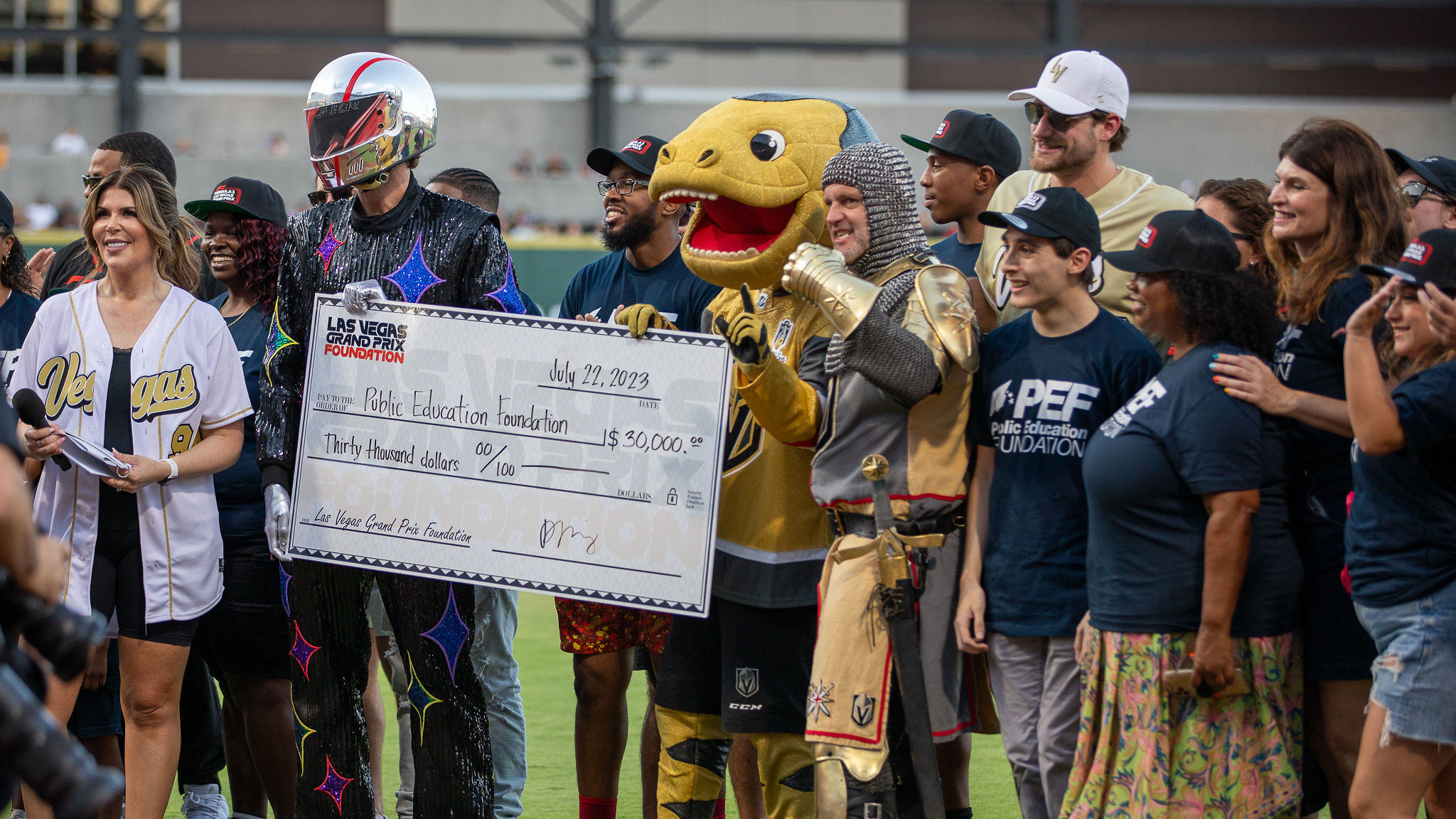 There was a sellout of more than 10,000 fans at the Las Vegas Aviators’ ballpark in Summerlin where the Knights played the Raiders in a charity softball game for Big Brothers Big Sisters and a public education organization Saturday evening.
