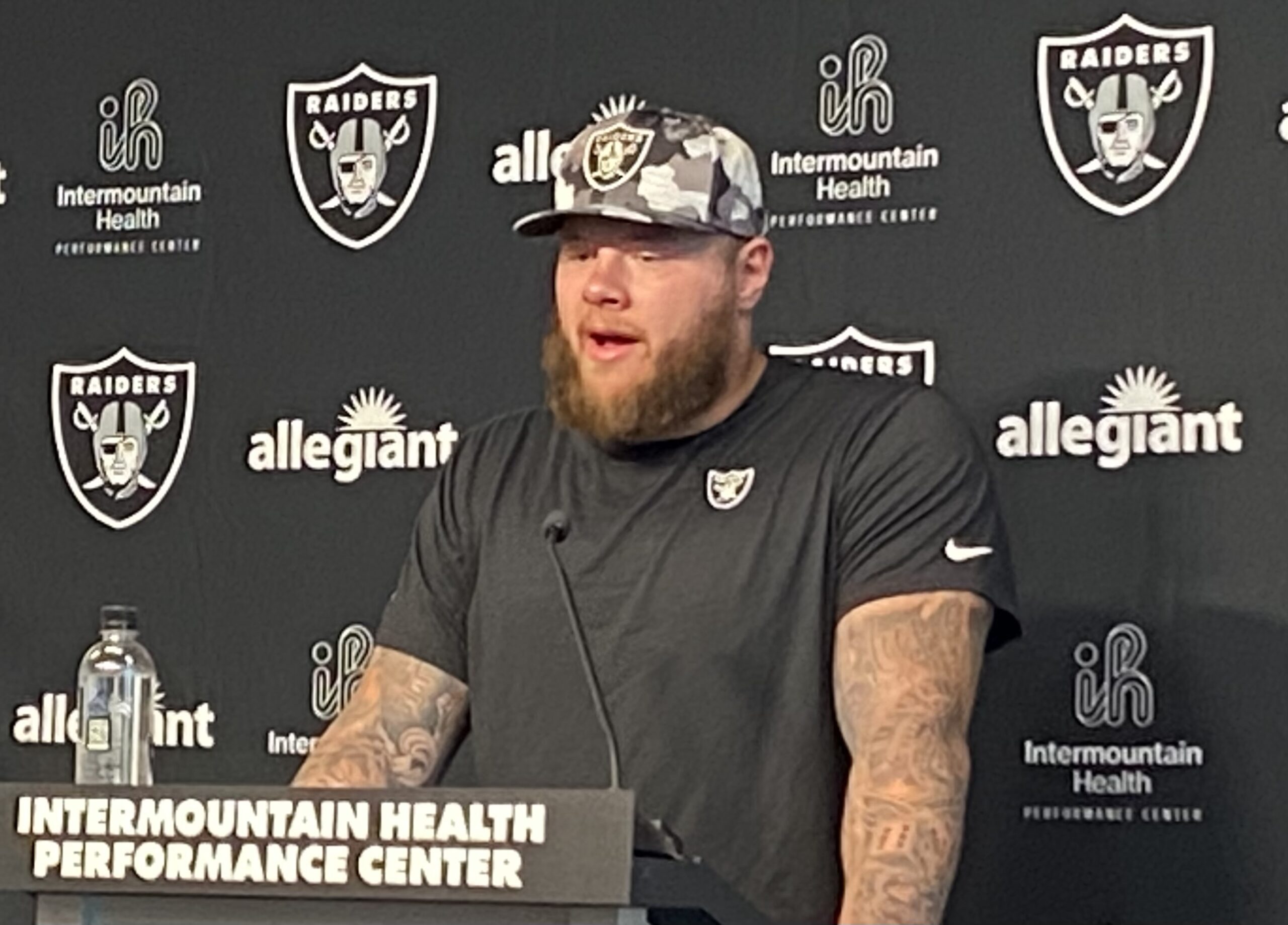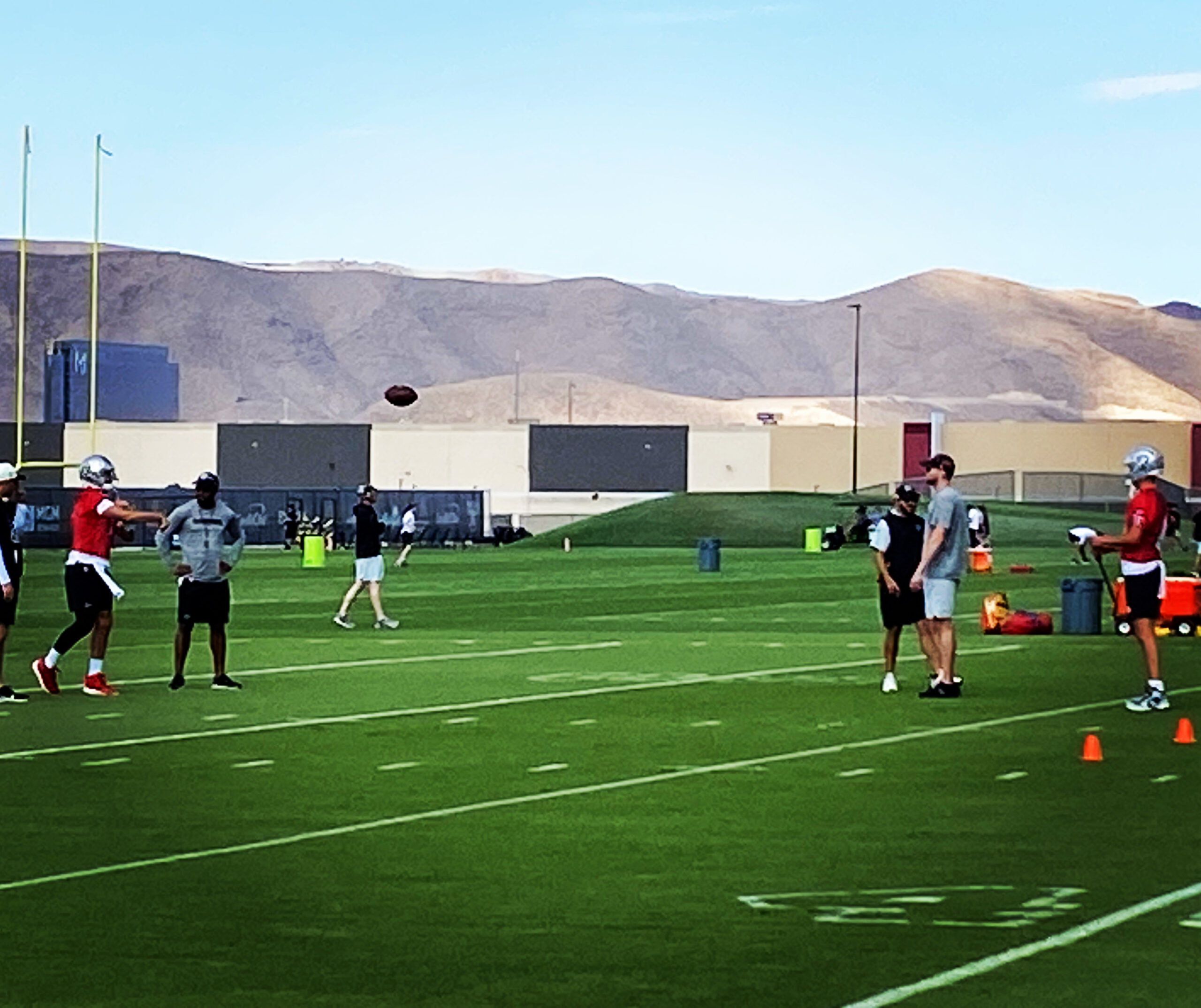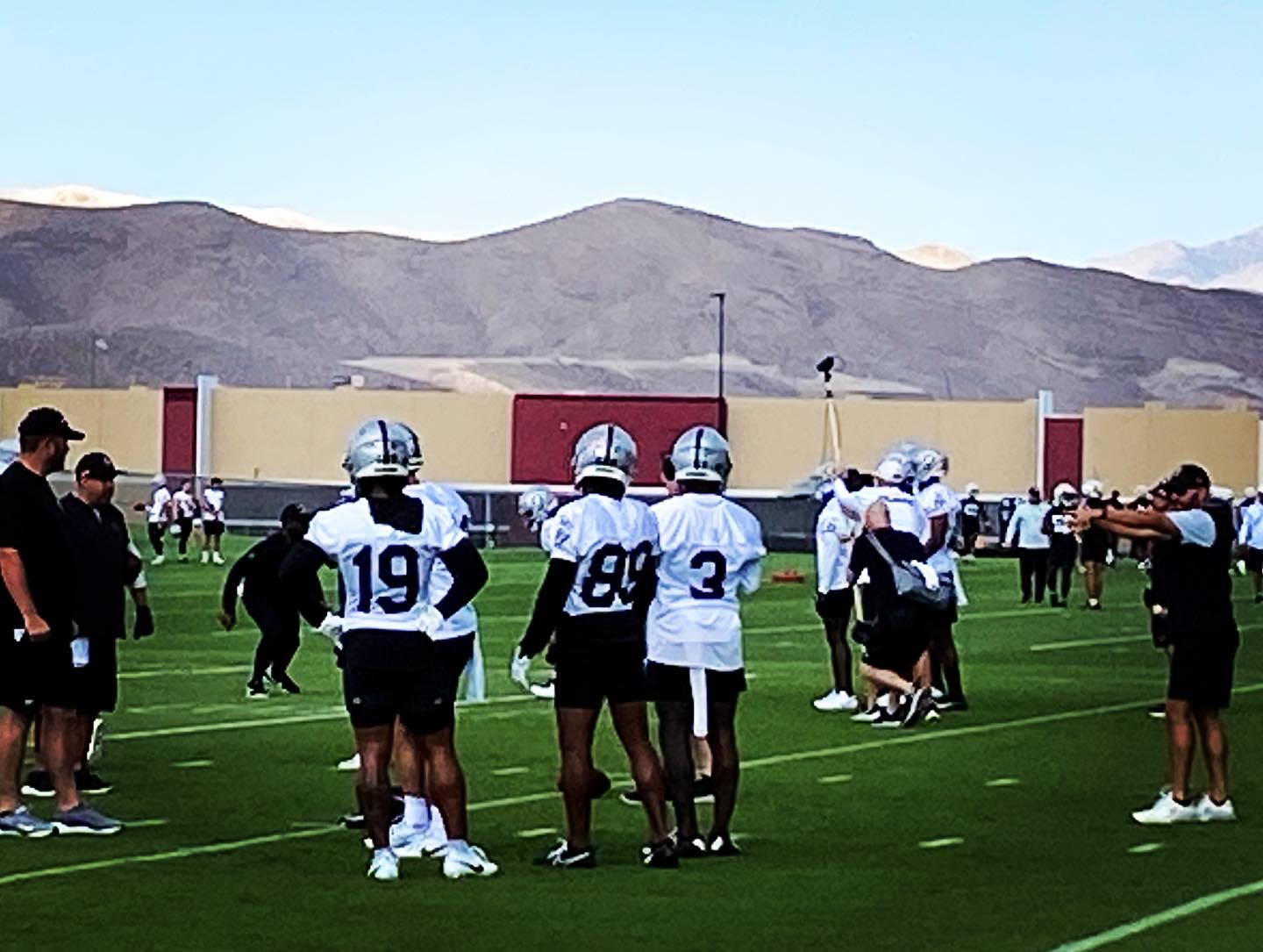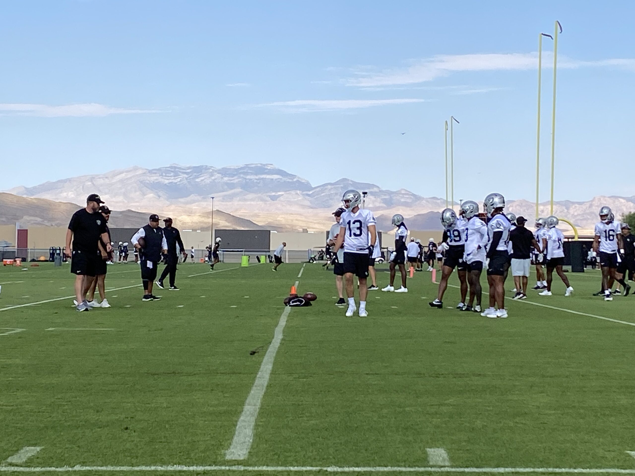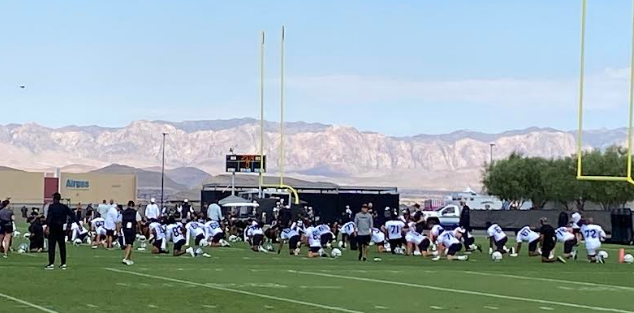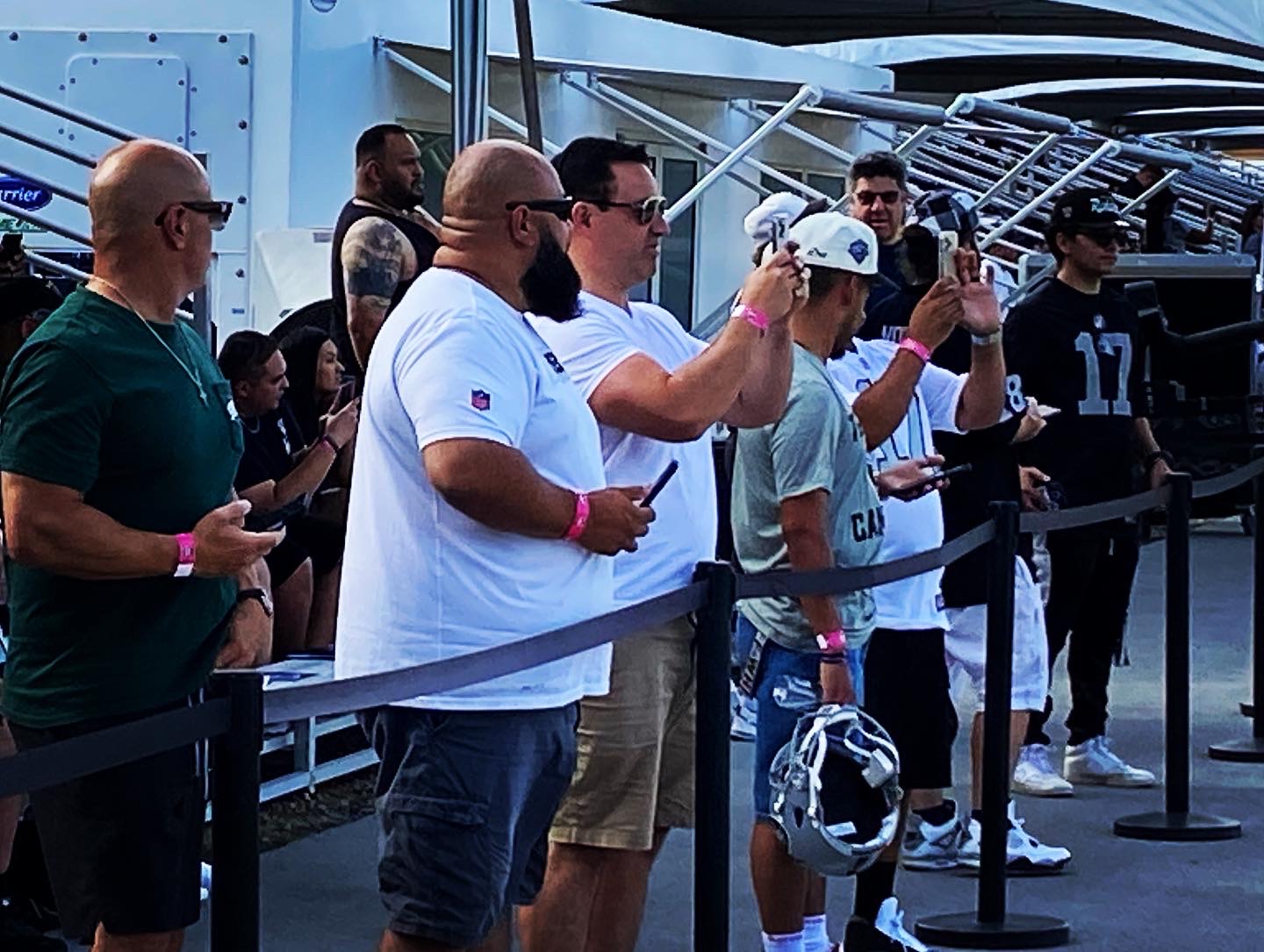 Fans soaked in the practice scenes this morning, watching from under canopied tents and drinking water. The fans are typically Raiders sponsors’ contacts and season ticket holders.
