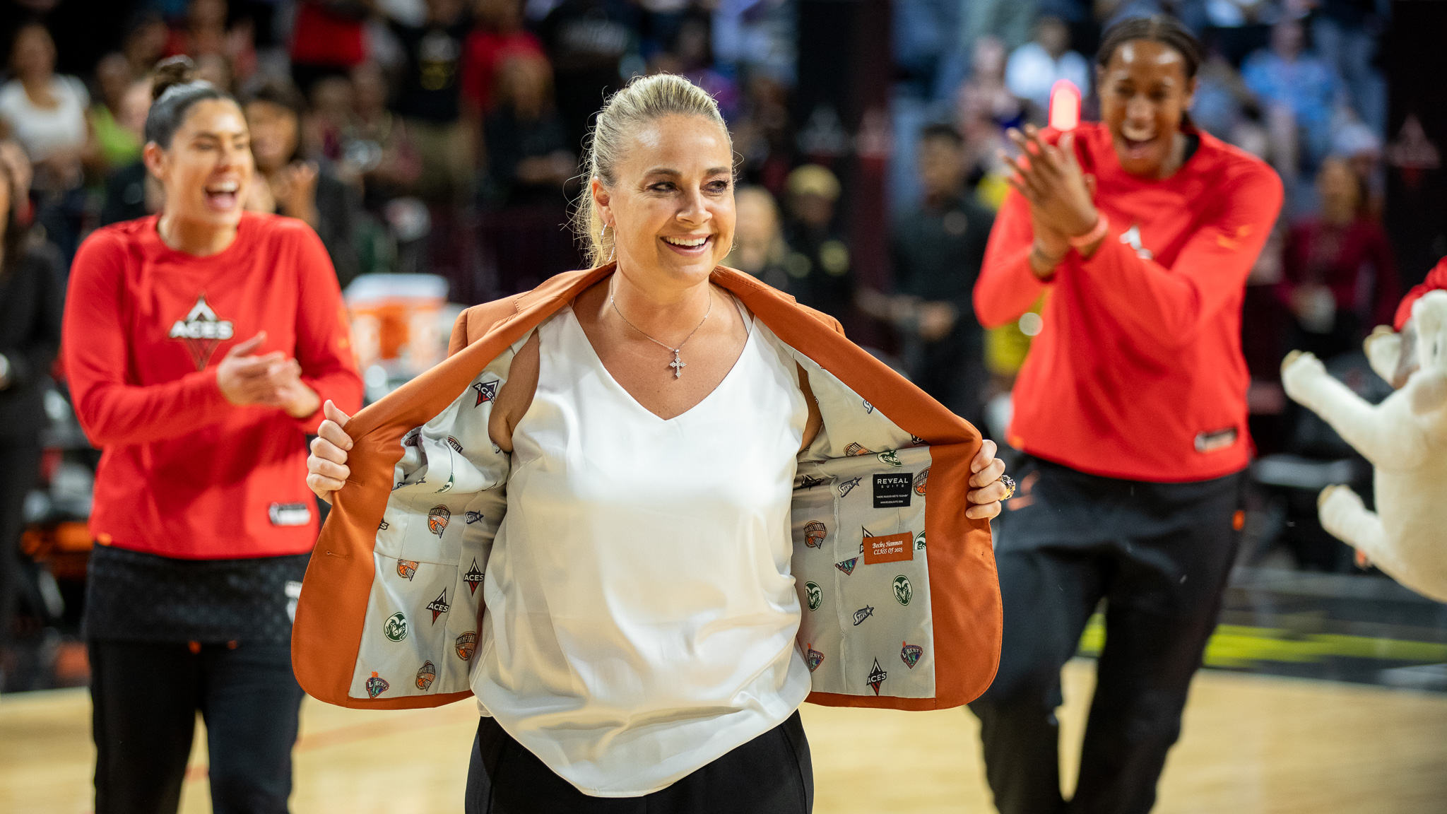 The Aces recognized their coach, Becky Hammon, before the game for being inducted into the basketball Hall of Fame.