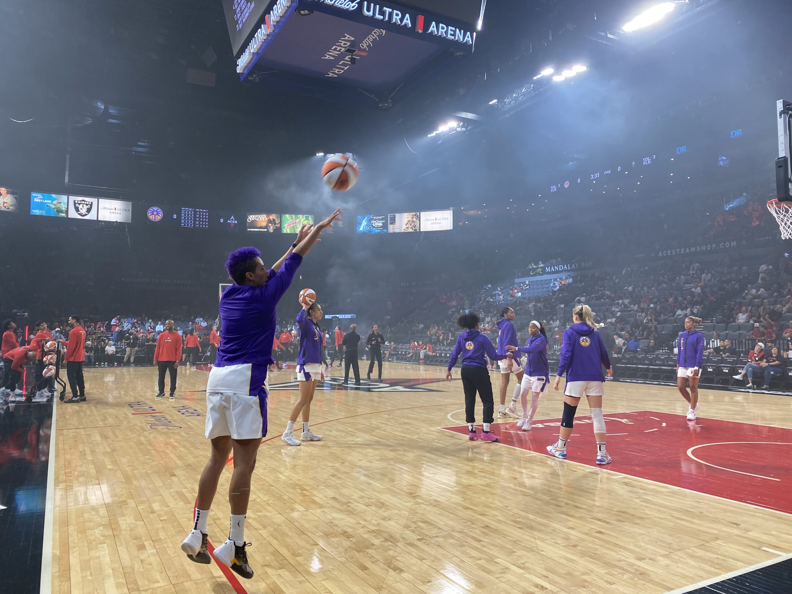 The Las Vegas Aces drew a packed house with announced attendance of 10,348 at Mandalay Bay’s Michelob Ultra Arena. And their WNBA game with the Los Angeles Sparks as broadcast on ABC network TV.