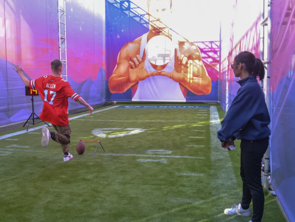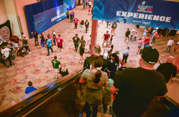 The Super Bowl Experience is like a giant fan fest event, an NFL interactive theme park with activities like 40-yard dashes, displays of the 57 Super Bowl rings, photo opps with the Super Bowl trophy and youth football clinics.
