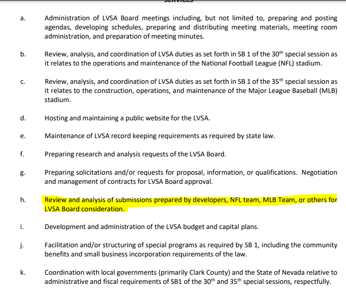 Here are some of the LVCVA jobs that the tourism agency would do for the stadium board.