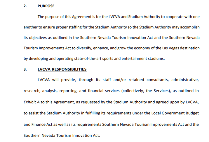 Here is the purpose of the LVCVA and stadium authority deal: