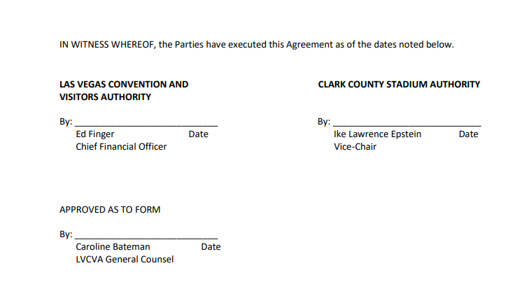 That’s why the stadium authority believes it is not having a conflict of interest via Hill’s twin roles as stadium board chairman and LVCVA head because Hill will not be involved in enlisting the tourism agency. Epstein, the UFC executive who is also a lawyer, will sign the deal on behalf of the stadium authority.