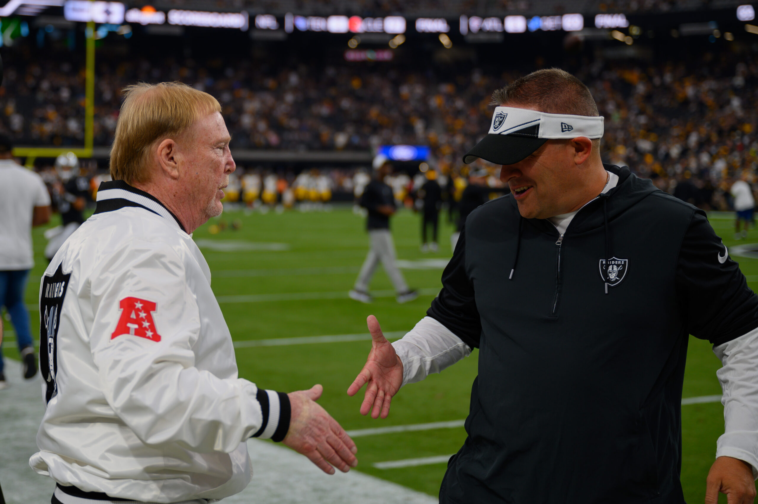 Before the donation event at 2 PM, social media sizzled with fans at the Chargers-Raiders game at SoFi Stadium screaming at Davis to fire McDaniels, the former Patriots offensive coordinator who on six of 17 games in his first season in 2022 and has won only a game out of the first four in 2023.