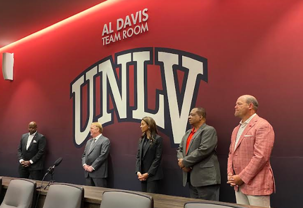 On Tuesday, UNLV President Keith Whitfield, Athletic Director Erick “Harp” Harper and UNLV Football coach Barry Odom were grateful and thankful hosts inside what is now the “Al Davis Team Room.”