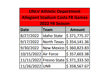 But when its comes to dollars and cents, the Raiders are the landlord and UNLV’s football team is the tenant, with UNLV paying the Raiders nearly $2.2 million in rent to play six games in the stadium in 2022.