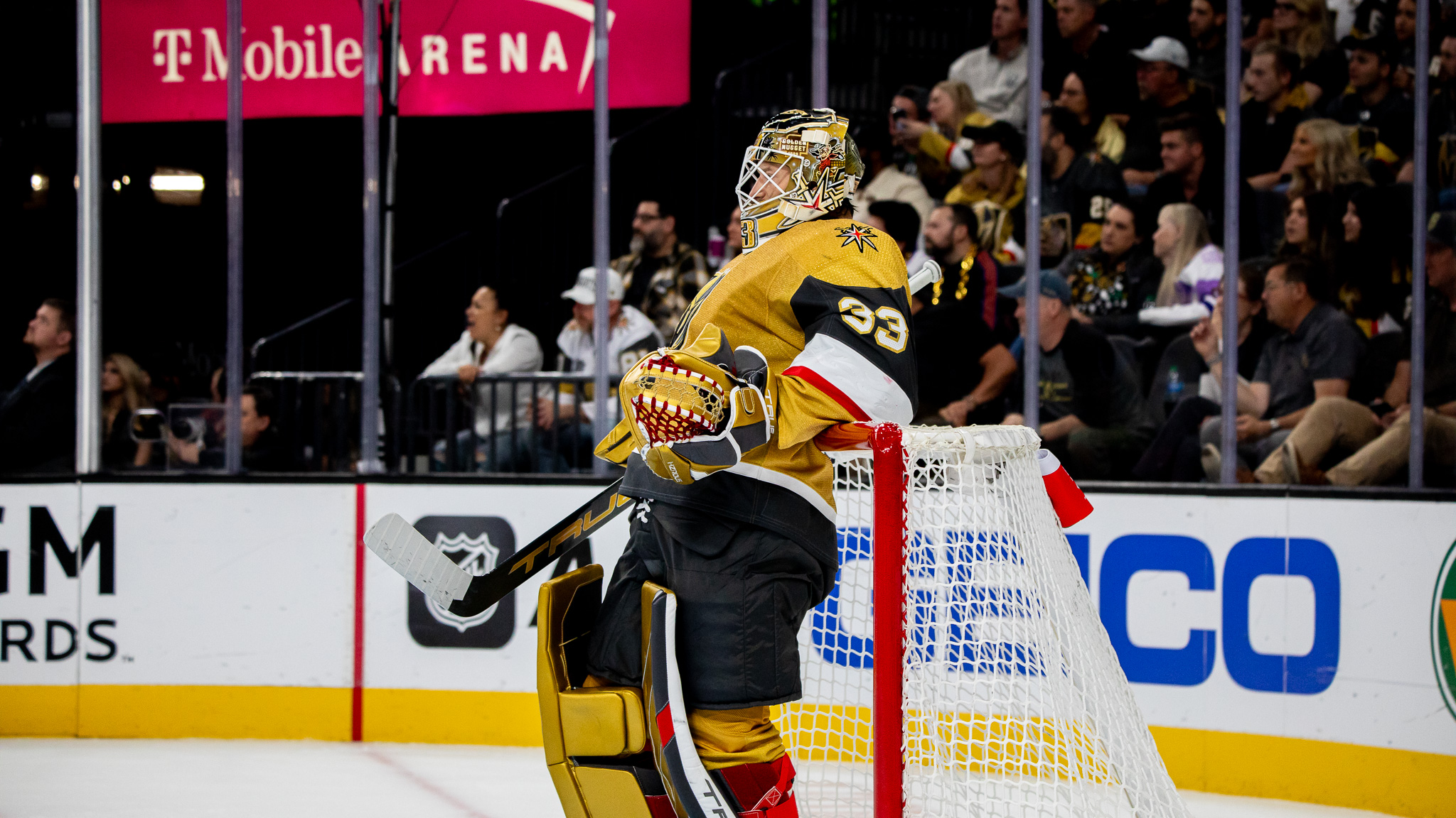 It was a goalie matchup of the six-foot, five-inch Jake Oettinger, 24, of Dallas, and the six-foot, four-inch Adin Hill, 27, of VGK — two of the best big goalies in the NHL.
