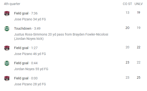 The Rebs dominated the third quarter, turning the game to their favor. By the end of three quarters, UNLV had also totaled 306 yards of offense, while Colorado State had 275.