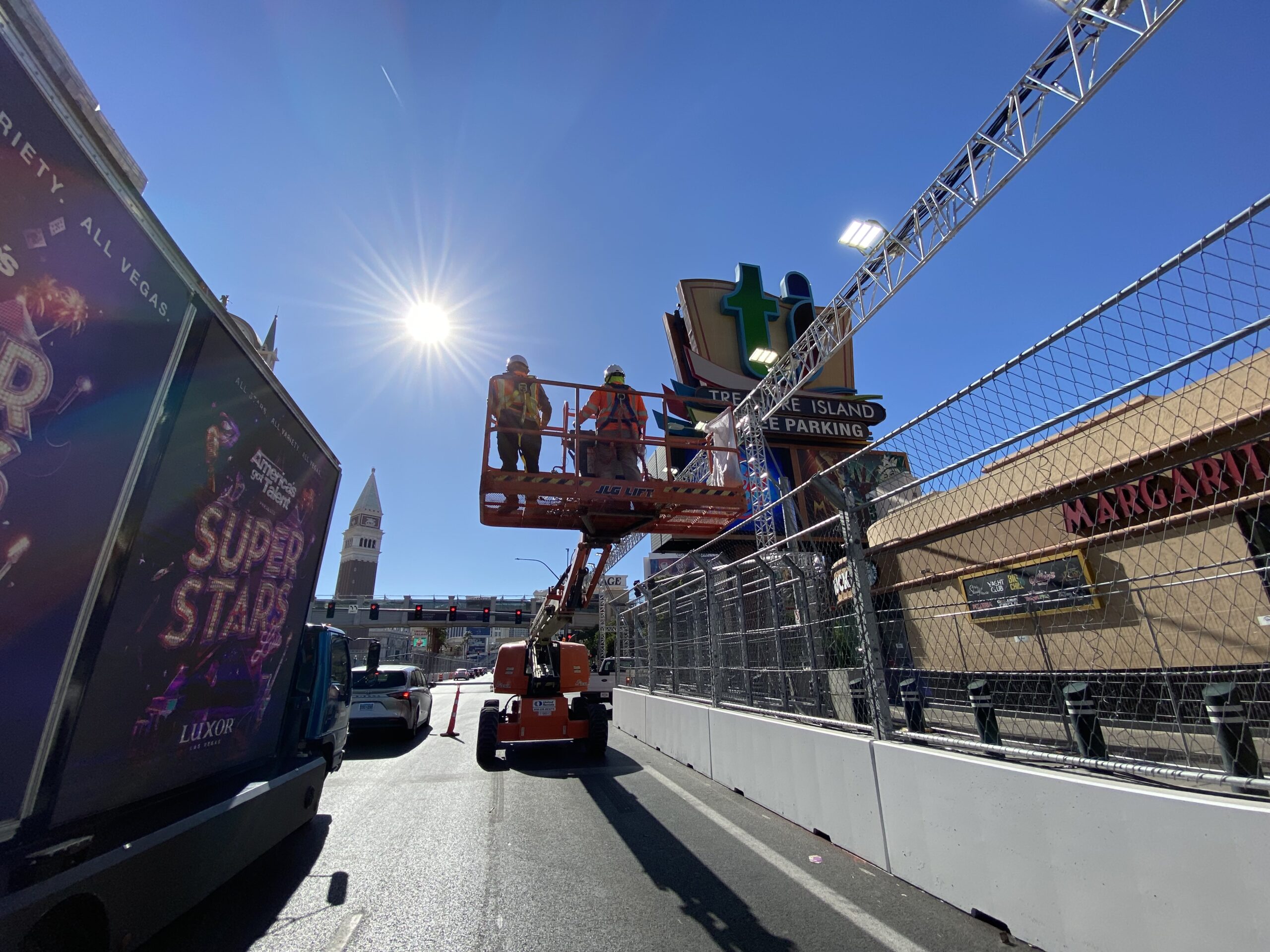 He’s working 18 days straight as Formula One race organizers build a 3.8-mile canyon of fences, barriers, grandstands and lighting mounts on Las Vegas Boulevard, Harmon Avenue, Koval Lane and Sands Avenue for next week’s road race that has divided Las Vegas locals.