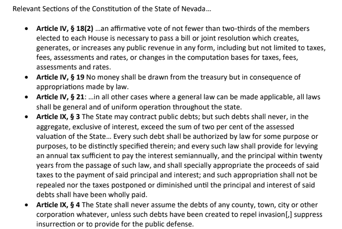 In the most recent legal development, Schools Over Stadiums said the Athletics’ Senate Bill 1 countered these five sections of the Nevada Constitution.