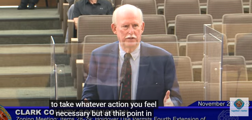 And Robinson’s lawyer, Christopher Kaempfer, tried to convince the county commission that the arena was happening because a traffic study was conducted, test wells were drilled on site, and $14 million were invested in the project, including $6 million in the last year.