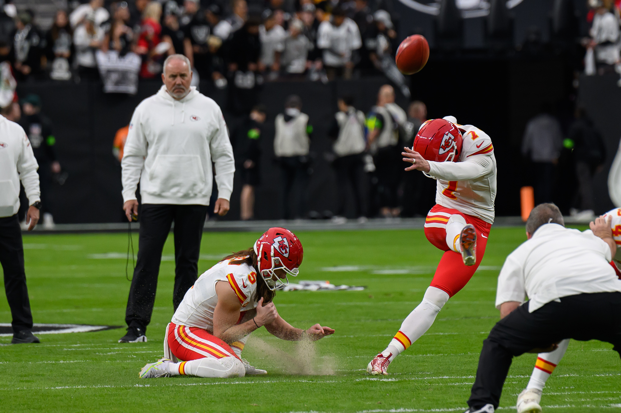 A late fourth quarter field goal padded the Chiefs’ lead to 31-17 over the Raiders. The red-clad Chiefs fans then began their tomahawk chop celebrations.