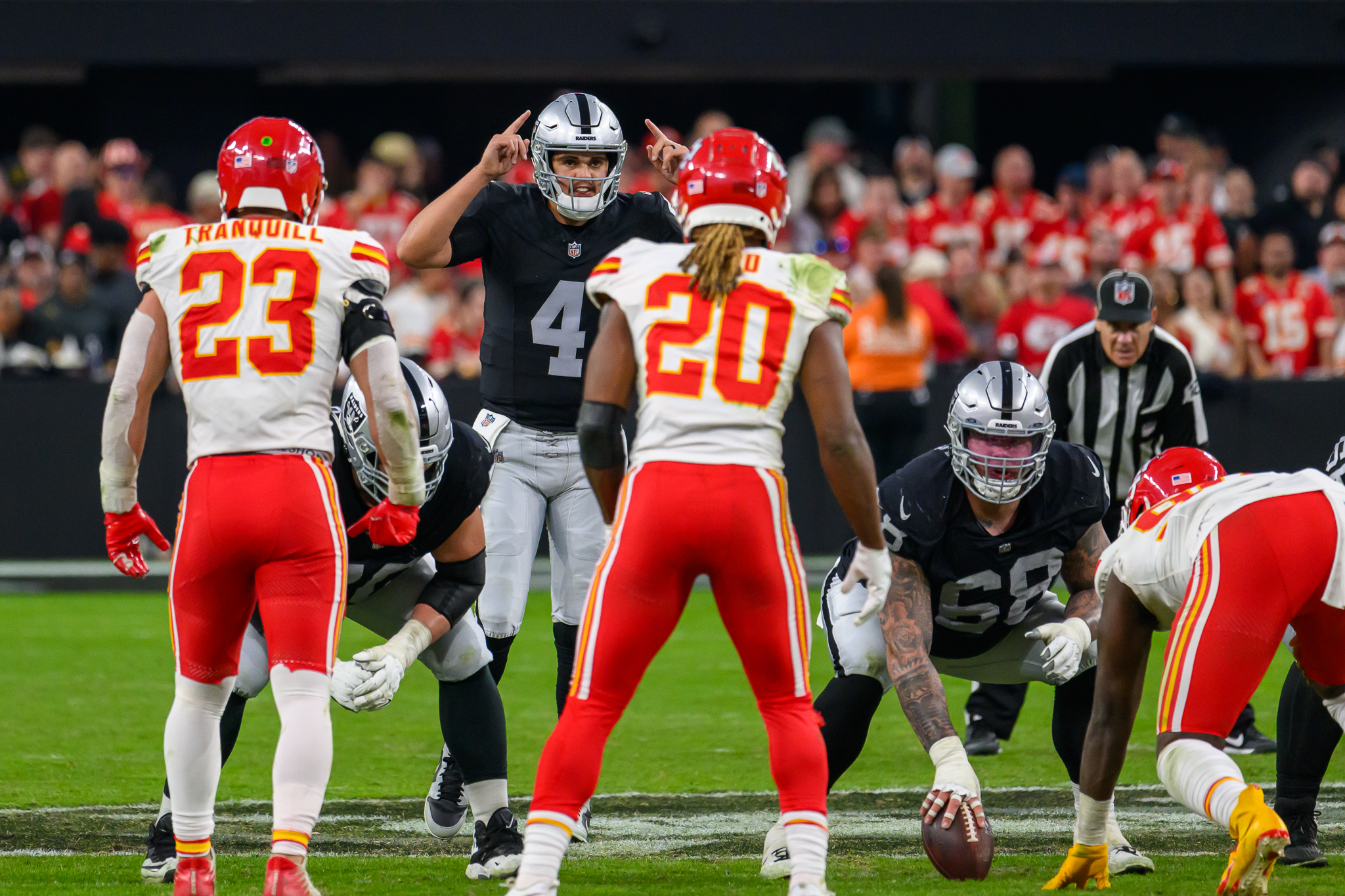 The Raiders’ top defender — Maxx Crosby — did sack Mahomes and the Raiders got a chance to move the ball.