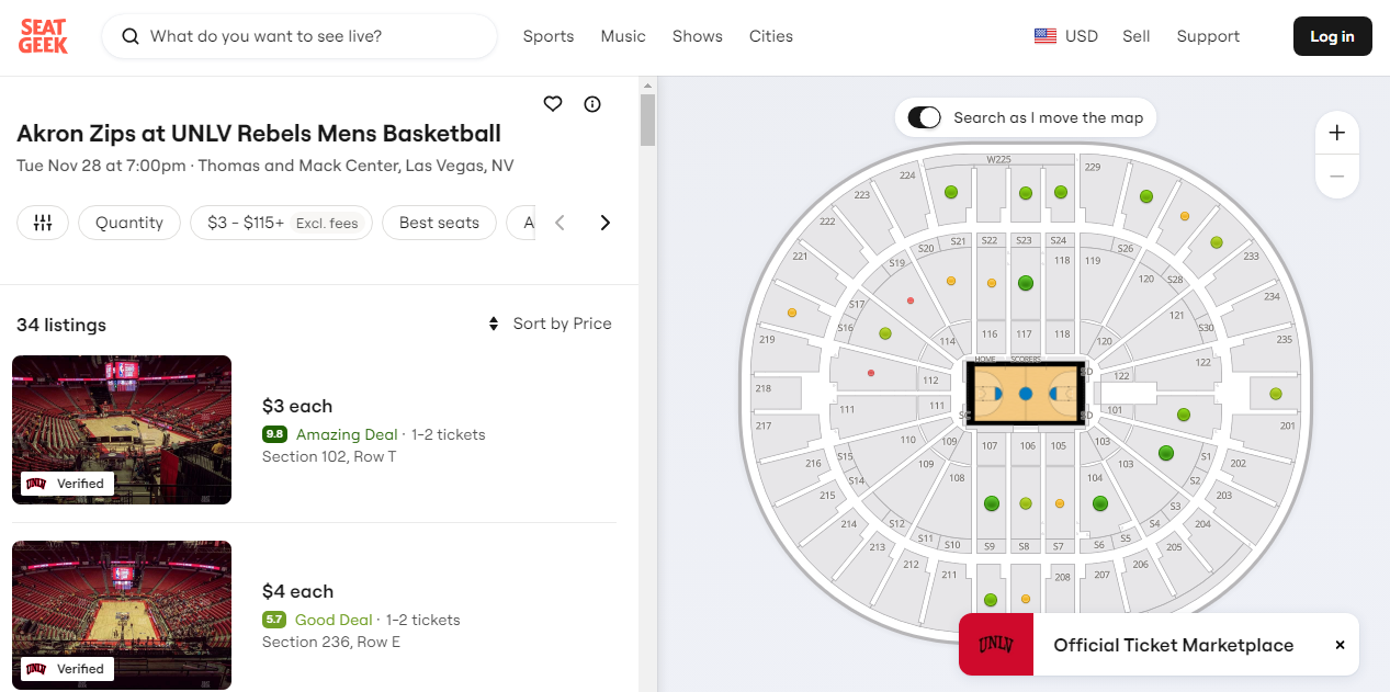 It’s hard to say you can’t afford to attend a UNLV basketball game Tuesday evening when Seat Geek is selling a secondary market ticket for three bucks for the Rebels vs Akron hoops game.