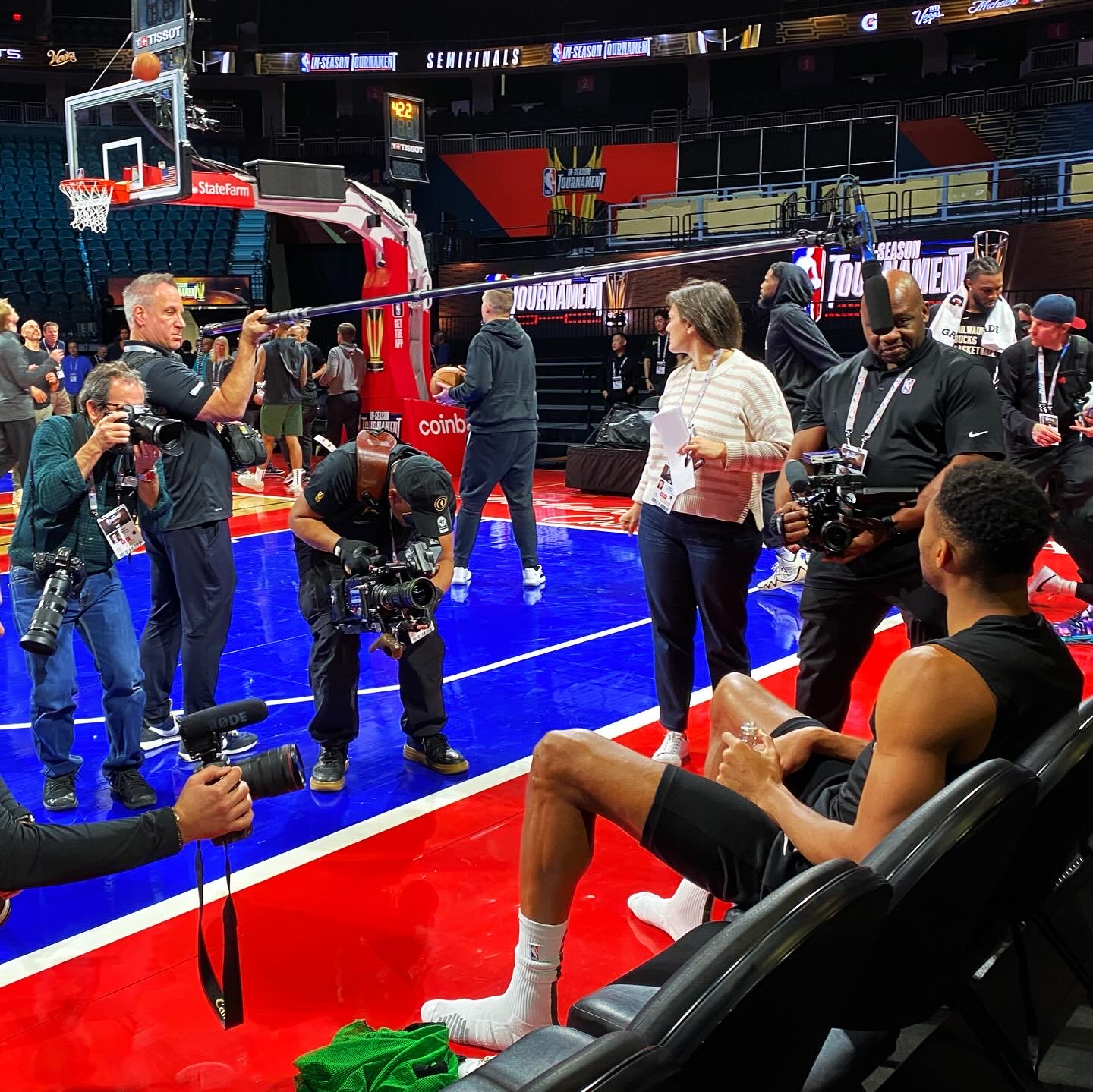 While UNLV copes with the tragedy of another shooting in Las Vegas, two miles away on the Strip the Milwaukee Bucks players were familiarizing themselves with the court at T-Mobile Arena.