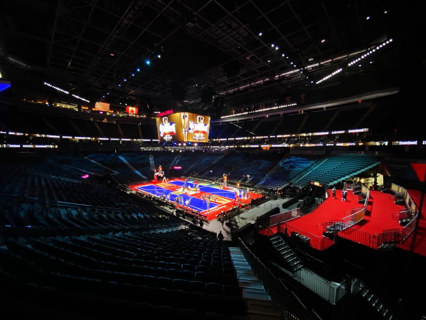 Crews at both arenas, which are only two miles apart, were busy working at their venues to set up for the contrasting sports events.