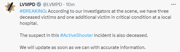 The shooter killed three people, with the shooter dead, according to LVMPD.