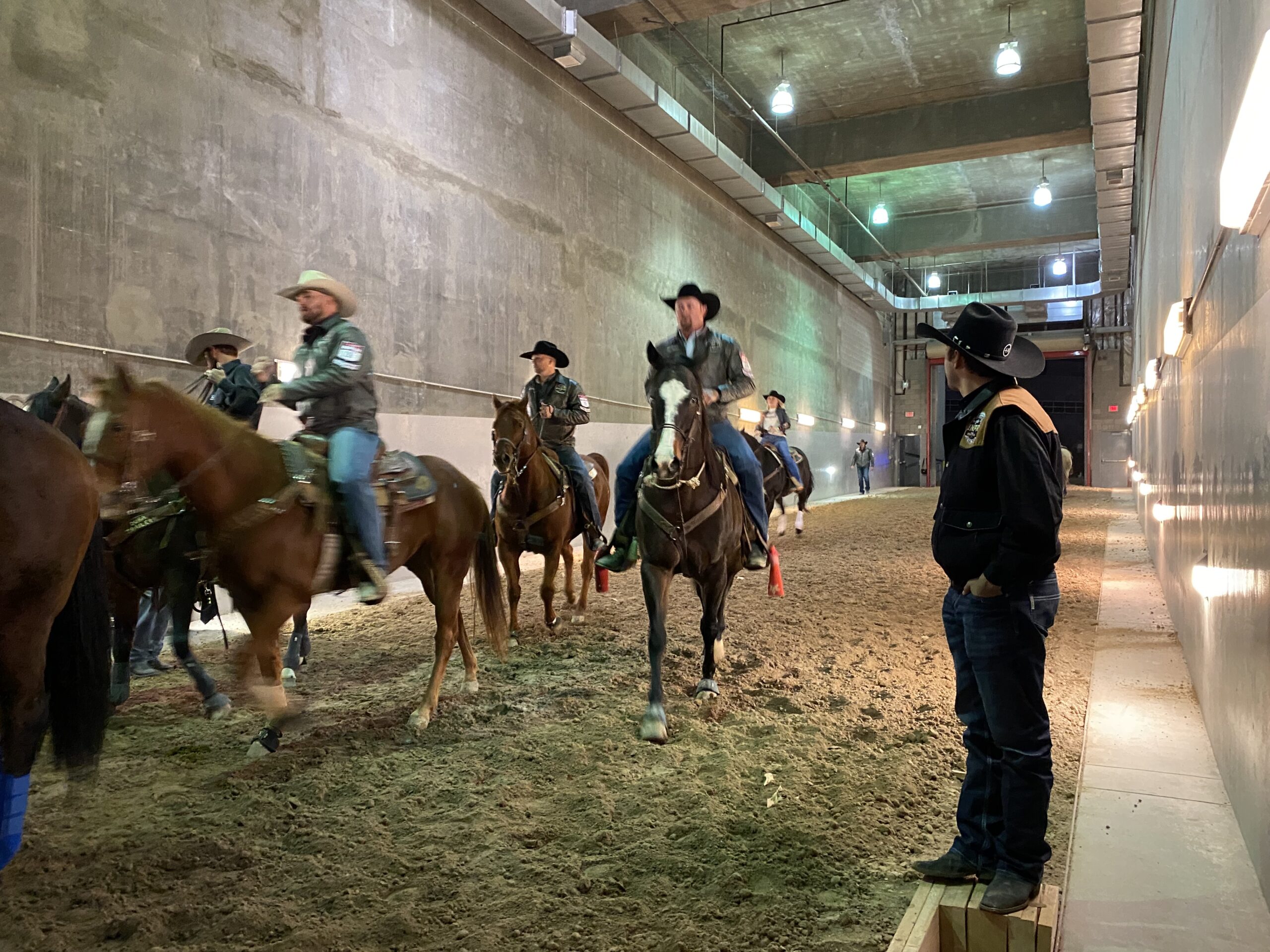 And it’s no accident that media can hear horses’ neighs because the horses run on a layer of dirt in a bay tunnel that leads from the arena to outside the venue.