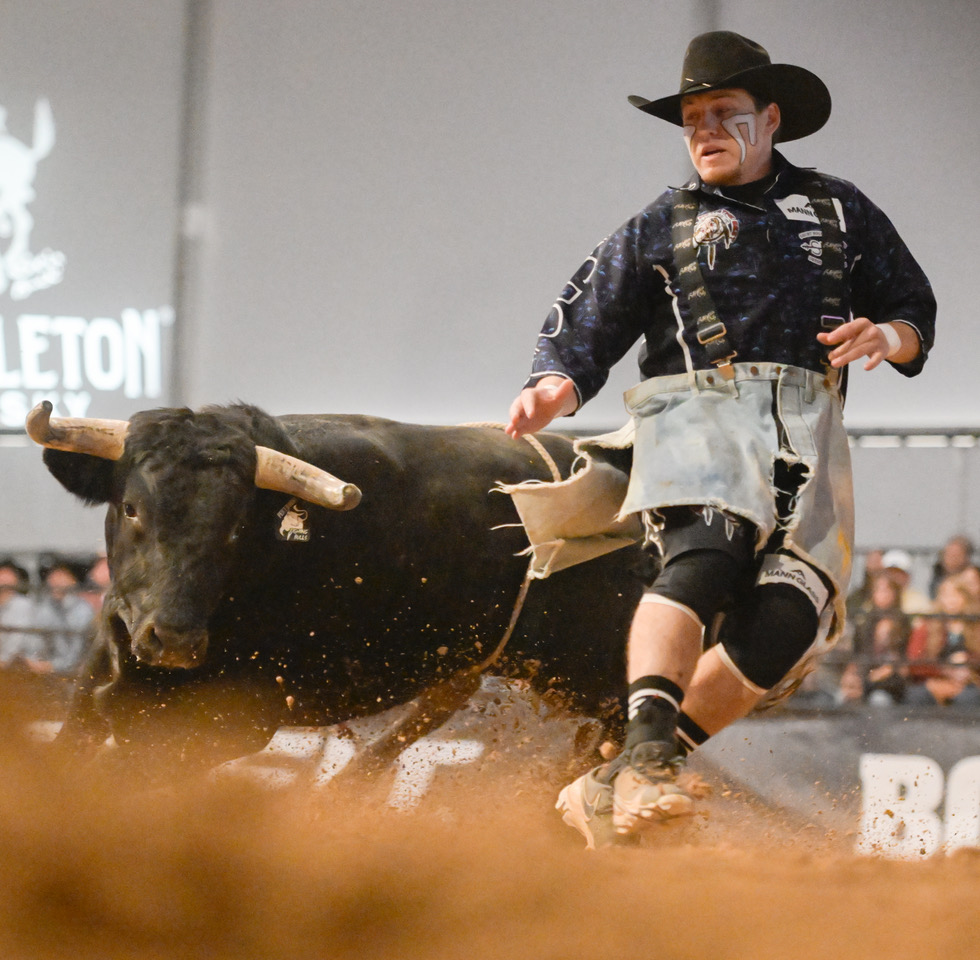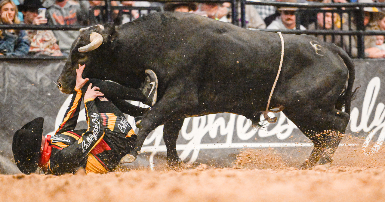 LVSportsBiz.com photographer Jeff Goulding visited the Bullfighters Only event to check the action there, where contestants and bulls share the dirt.