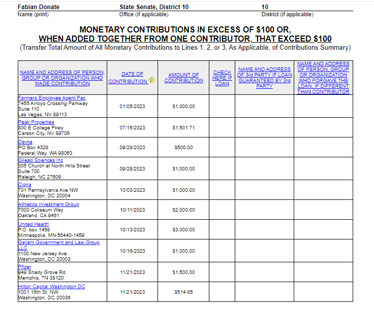 Athletics Show Appreciation For Nevada State Legislators, Clark County Commissioners With Political Contributions