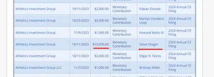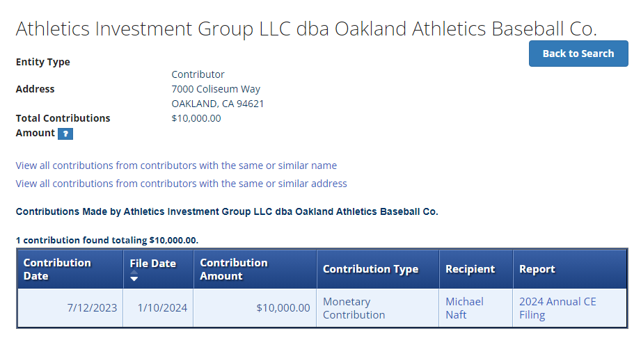 Assembly Speaker Steve Yeager, who is a very big sports fan, and Senate leader Nicole Cannizzaro each received $10,000 for their political campaigns after both voted yes on the Athletics’ $380 million stadium subsidy that was approved by the state legislature in June.
