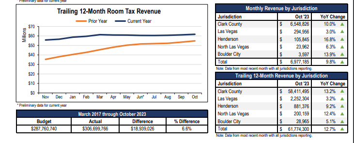As you can see the Raiders stadium room tax revenues are running slightly higher this year over last year.