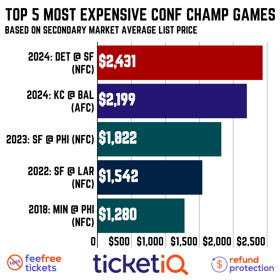 Not only is Super Bowl 58’s ticket prices shaping up to be the most expensive in title game history, but the lead-in conference championship ticket prices are very costly, too, for Sunday’s two games.